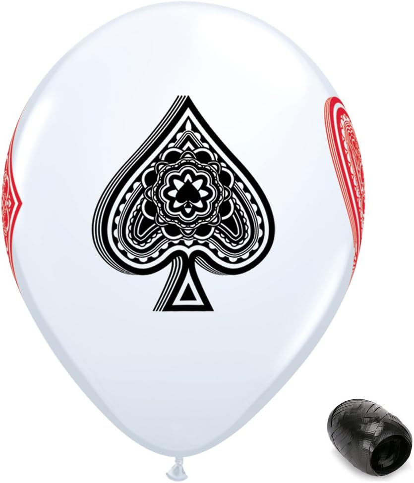 - WINNING HAND: 10-Pack of 11″ latex balloons featuring classic Poker Card Suits (Hearts, Diamonds, Clubs, Spades).