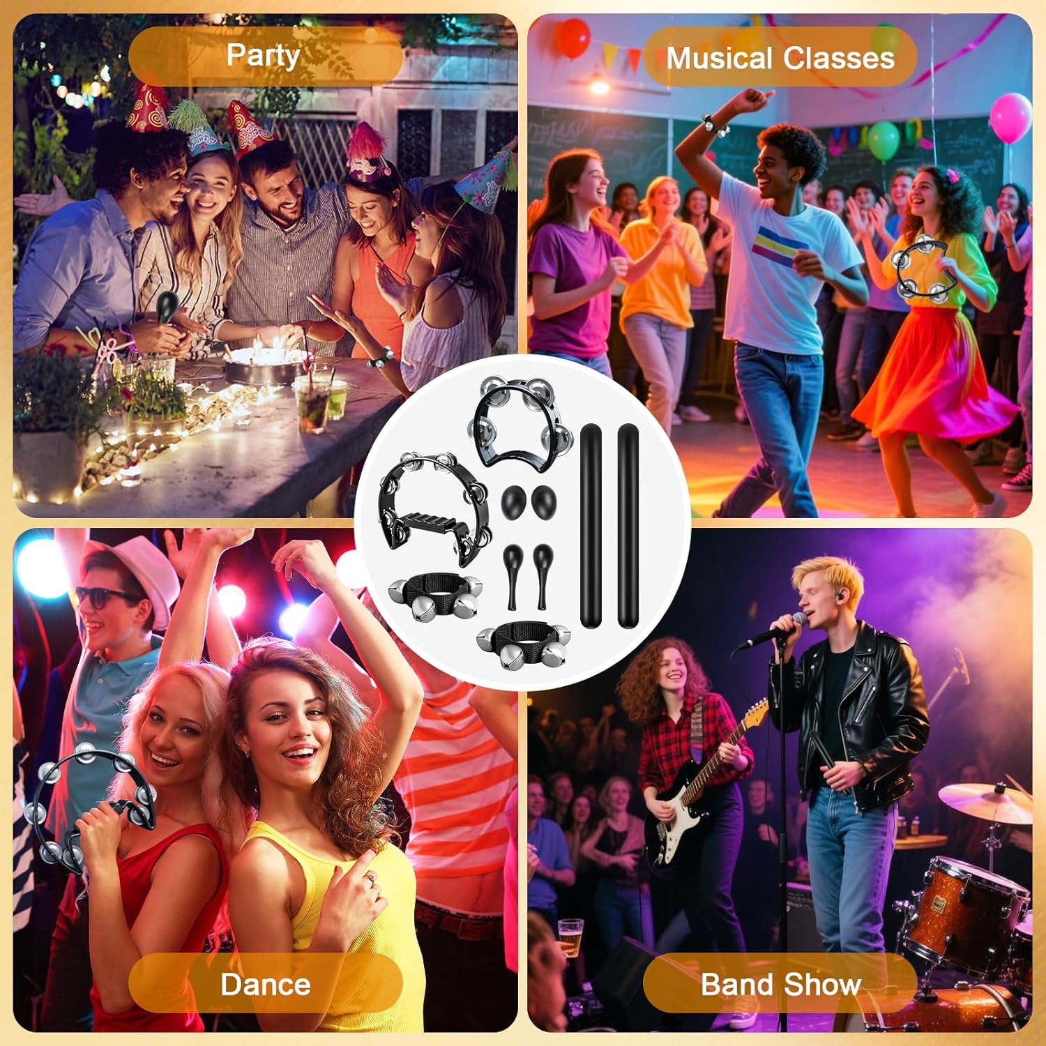 Constructed from a blend of high-quality metal jingles, durable plastic shells, and smooth wood, these instruments are built to last. The edges are meticulously polished to be burr-free, ensuring safe play for musicians of all ages. The lightweight design makes this set highly portable—perfect for outdoor concerts, summer camps, or road trips.