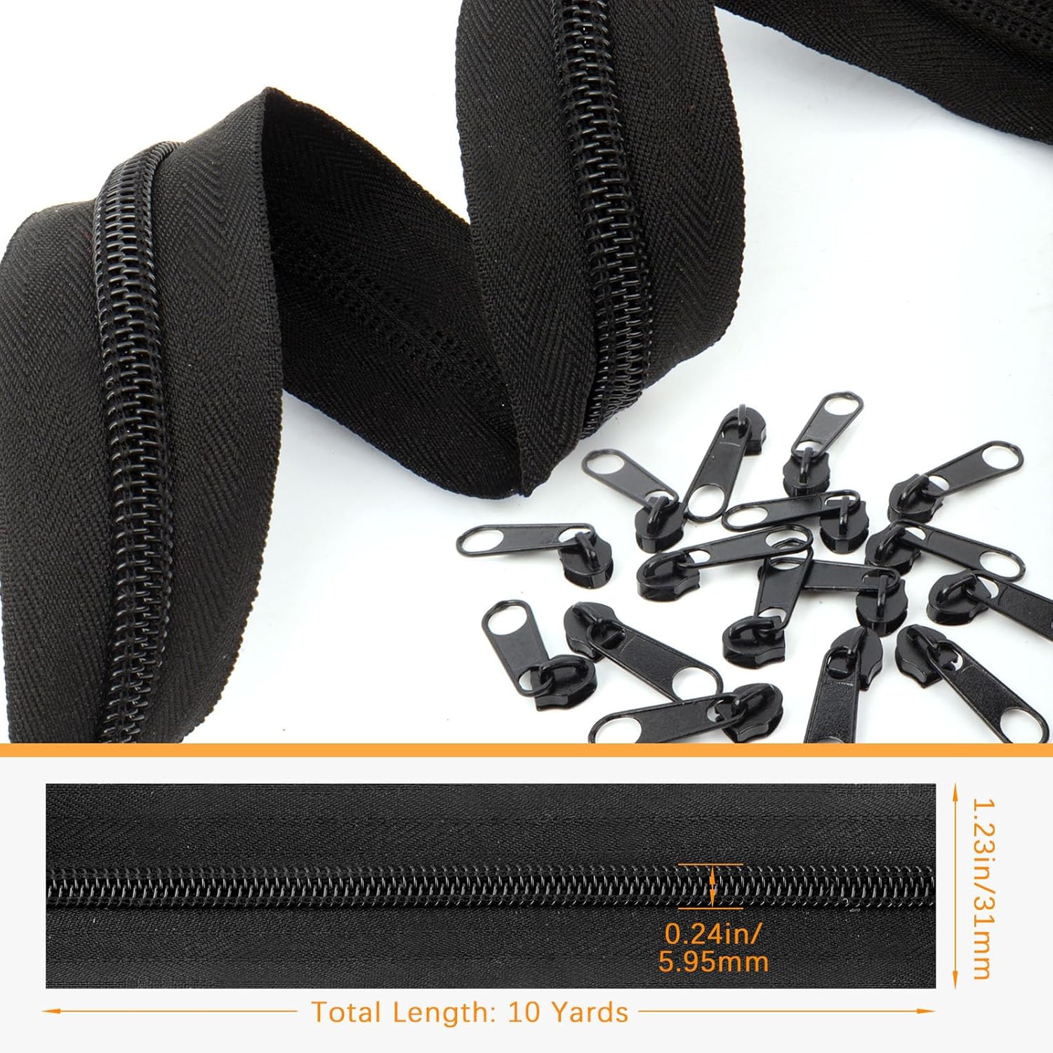 - COMPLETE DIY ZIPPER KIT: Get a generous 10-yard roll of #5 continuous nylon coil zipper tape plus 20 separate metal sliders, giving you the flexibility to cut custom lengths for any project.