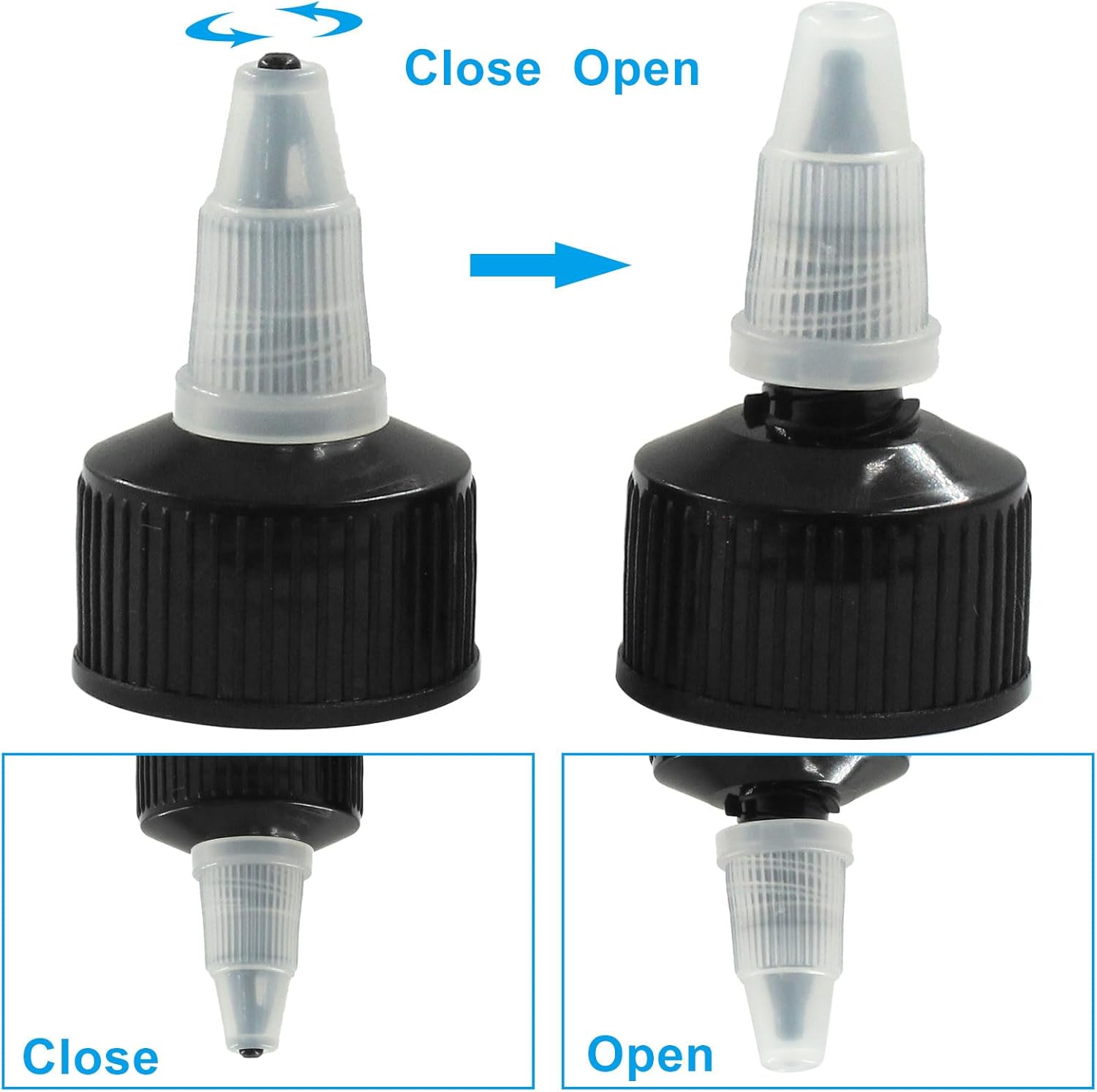 - Universal Fit: Standard 24/410 neck size fits most squeeze bottles, glue bottles, and cosmetic containers.