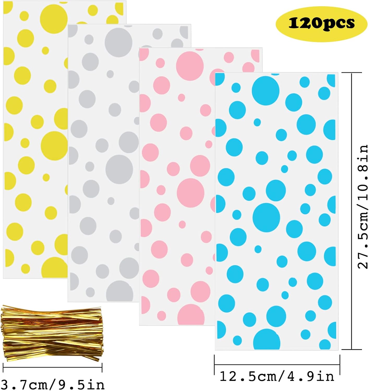 Each bag measures 12.5 x 27.5 cm (4.9 x 10.8 inches), providing ample space for standard-sized confectioneries and small gifts. The set includes 120 matching gold twist ties, allowing you to seal your bags securely and stylishly without the need for additional tools. These bags are the perfect solution for DIY wedding favors, classroom treats, birthday party goodie bags, baby shower souvenirs, and holiday gifting.