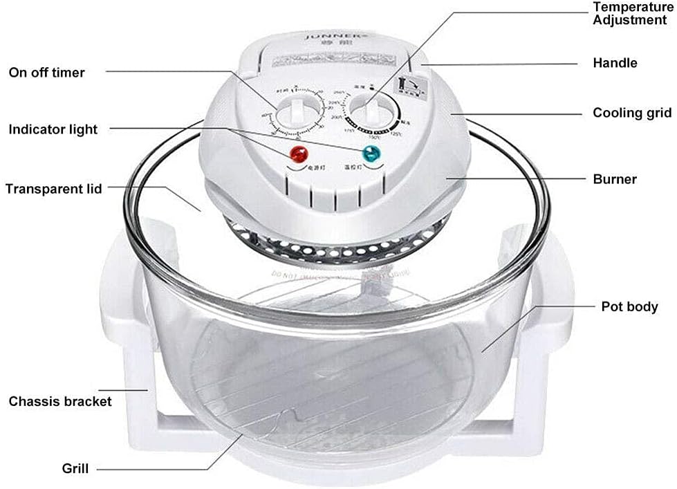 - MULTI-FUNCTIONAL COUNTERTOP OVEN: 12L capacity convection cooker acts as an air fryer, roaster, and defroster. Uses infrared technology for fast, energy-efficient cooking.