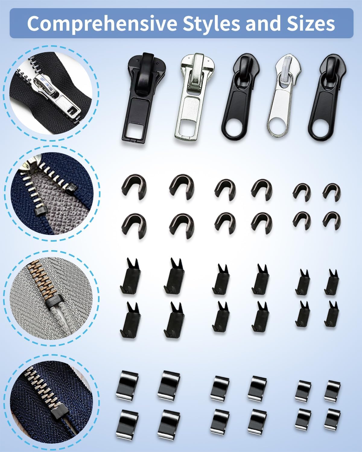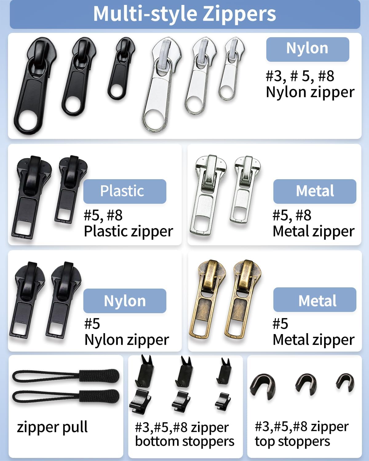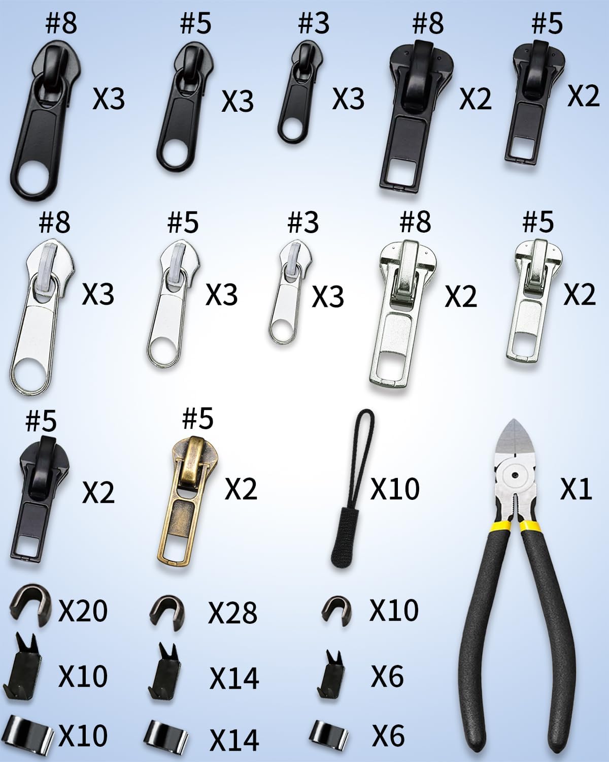 Don’t toss out your favorite jacket or backpack just because of a broken zipper! This comprehensive 159-piece zipper repair kit has everything you need to fix zippers on virtually any item in your closet or travel gear. Perfect for quick DIY repairs at home or on the go, this universal zipper replacement kit saves you time and money on professional alterations. The kit includes an impressive variety of zippers in multiple sizes and colors – 11 black nylon zippers, 9 silver nylon zippers, 6 metal zippers, and 4 plastic zippers in sizes #3, #5, and #8. You’ll also receive 10 zipper pull replacements, 58 top stoppers, 60 bottom stoppers, professional-grade zipper installation pliers, and detailed instructions to guide you through every repair. Crafted with high-strength metal and premium electroplating, these replacement zippers and sliders offer smooth operation and long-lasting durability. Whether you’re repairing a winter coat, hiking backpack, duffle bag, suitcase, or even a sleeping bag, this all-in-one zipper fixer handles it all. No sewing skills required – the included pliers make installation simple and hassle-free.