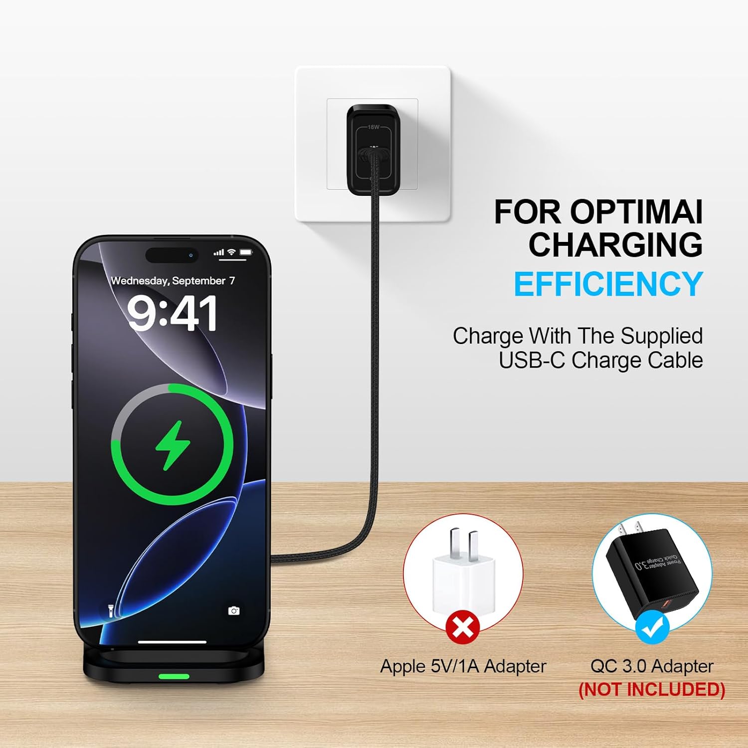 - 1x 15W Fast Wireless Charger Stand