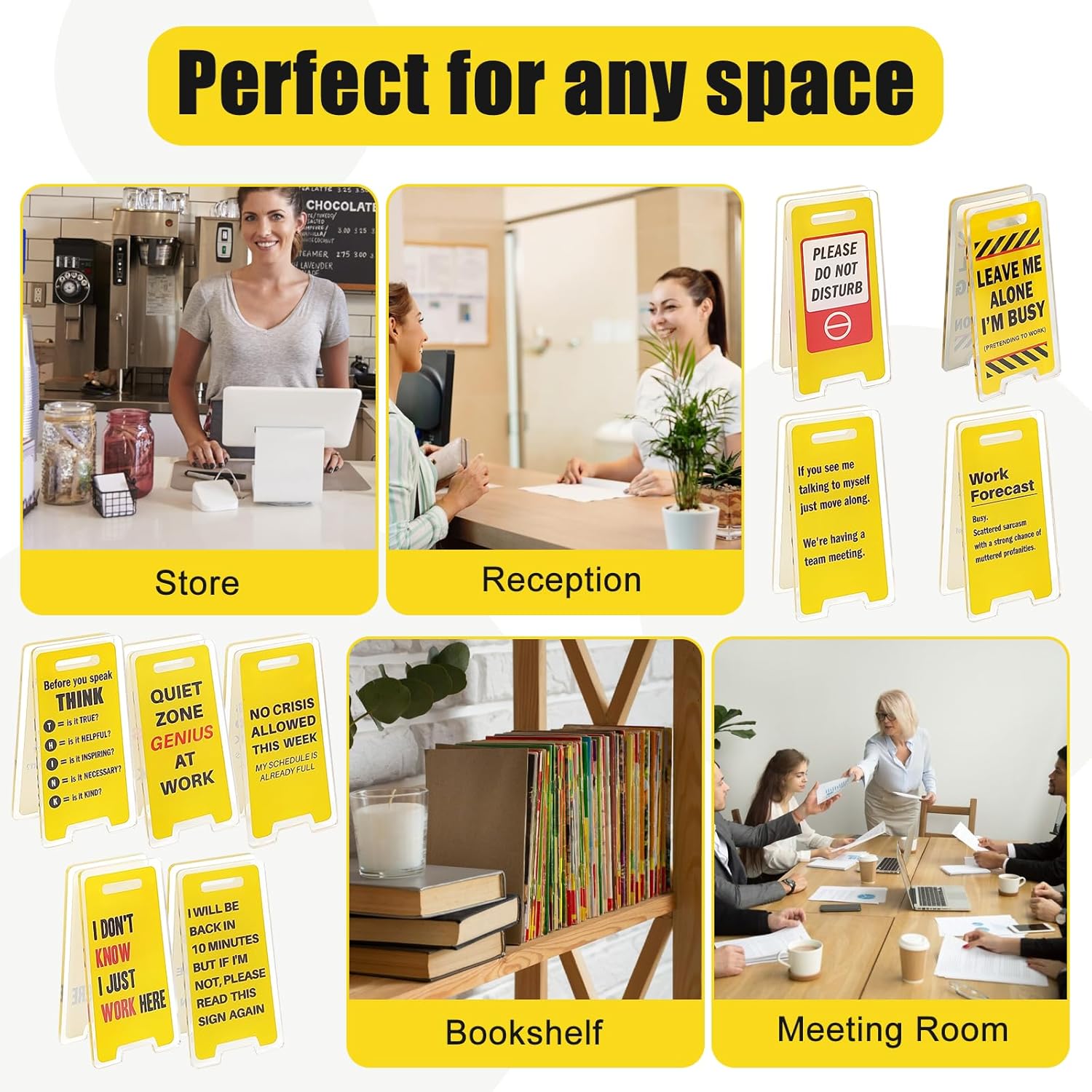 - ORGANIZED WITH A SMILE: Keep your workspace tidy and your spirits high with these dual-purpose sign holders that combine office organization with comedy.