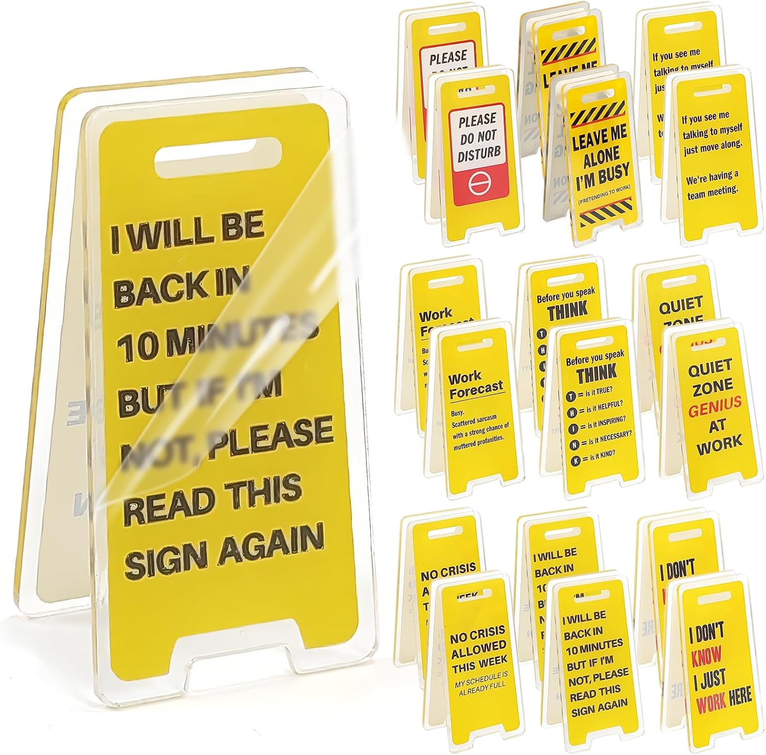 18 Pcs Funny Office Desk Sign Clips – Humorous Acrylic Memo Holders & Coworker Gag Gifts for Work Decor