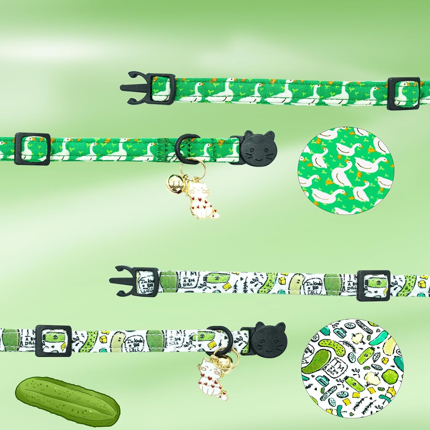 • UNIQUE & STYLISH DESIGN: Each pack features two distinct, eye-catching patterns (Goose & Dill) that add a touch of whimsy to your pet’s look. Includes a removable bell with a gentle chime to help you track your cat’s whereabouts without being overwhelming.