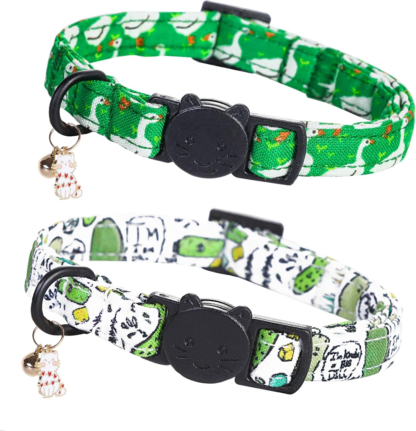 2-Pack Cute Cotton Cat Collars with Bells – Adjustable, Safe Breakaway Buckle for Kittens & Small Pets (Goose & Dill Patterns)