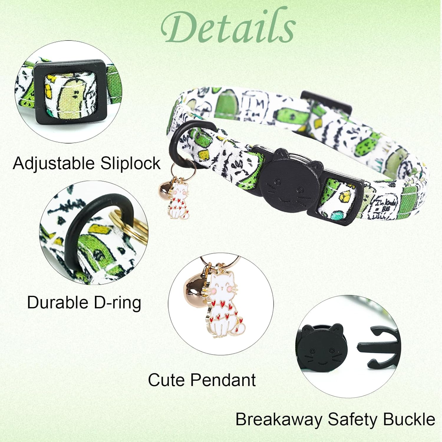 • Safety Breakaway Buckle: Quick-release mechanism prevents accidental choking or snagging.