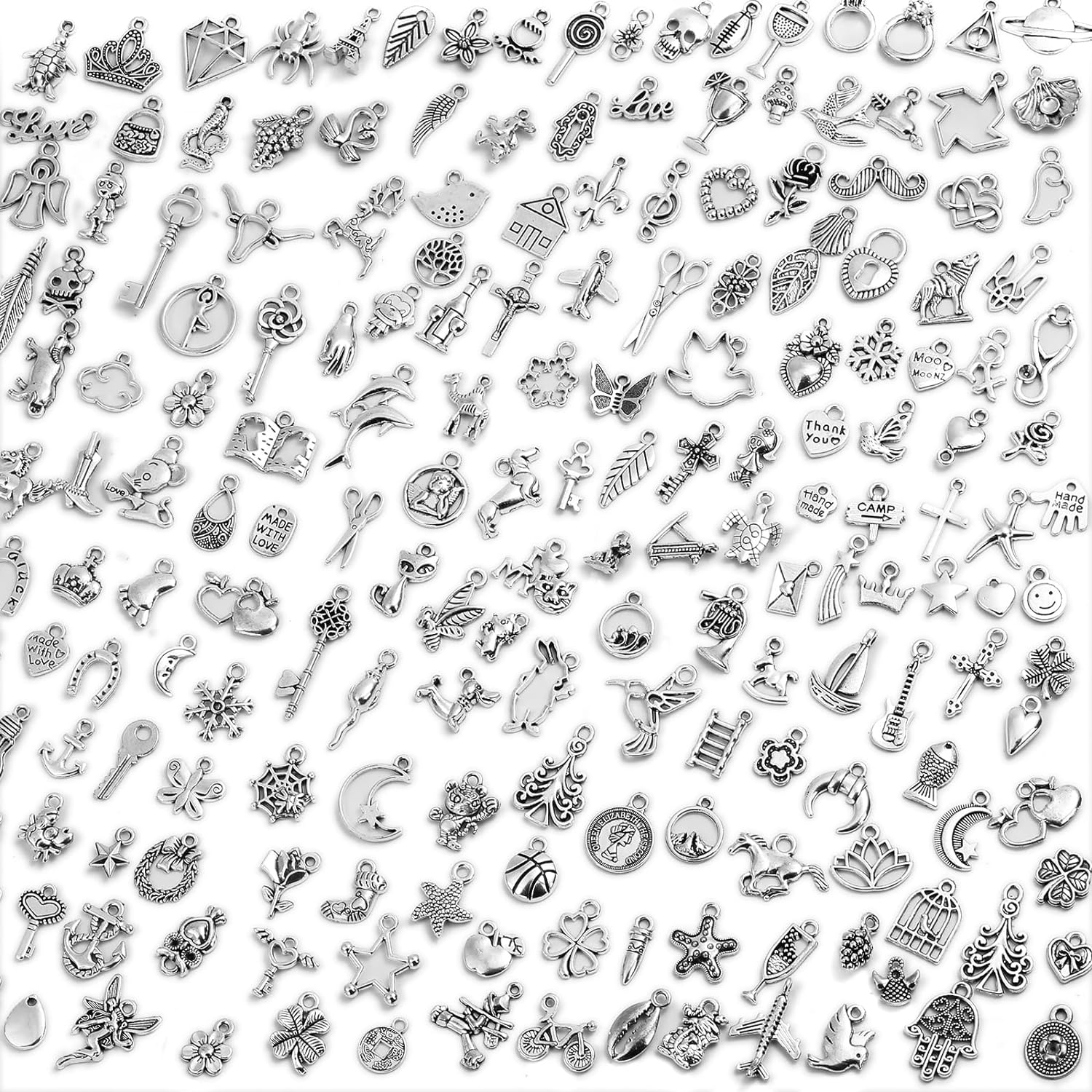 • WHOLESALE BULK PACK: Includes 200 pieces of silver-plated alloy charms, providing exceptional value for jewelry designers and DIY enthusiasts.