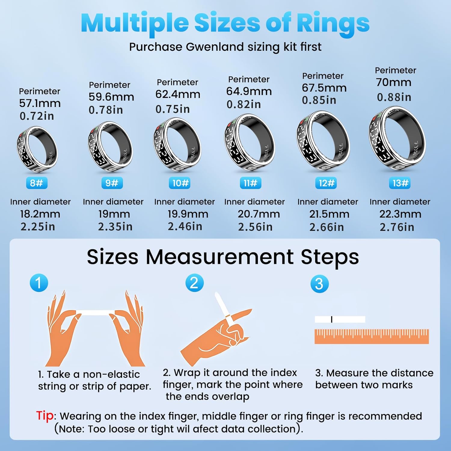 The Perfect Gift of Wellness: Stylish and practical, this smart ring makes for a thoughtful gift for friends and family, empowering them to prioritize their health in style. Available in sizes 8-13.