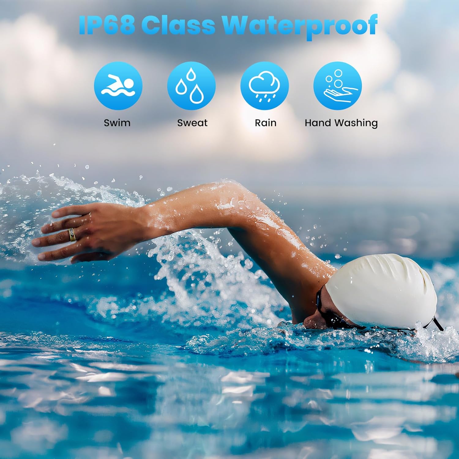 - IP68 Waterproof & Ultra-Comfortable: Weighing only 3.5g, this ring is so comfortable you’ll forget you’re wearing it. With an IP68 waterproof rating, it is built to withstand swimming, rain, and intense workouts.