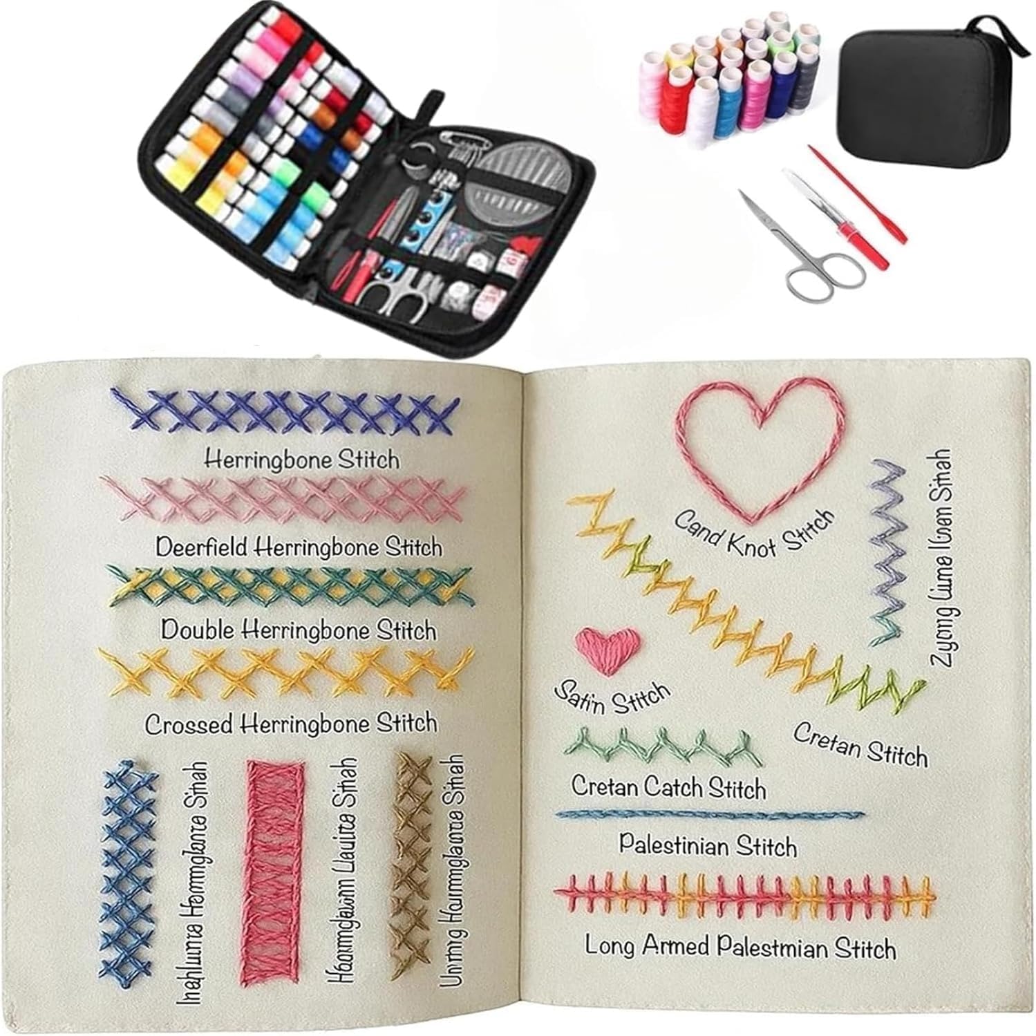 2026 Upgraded Embroidery Stitch Book Kit – 86-Piece Portable All-in-One Set with 106 Patterns, Tools & Tutorials for Adults and Beginners