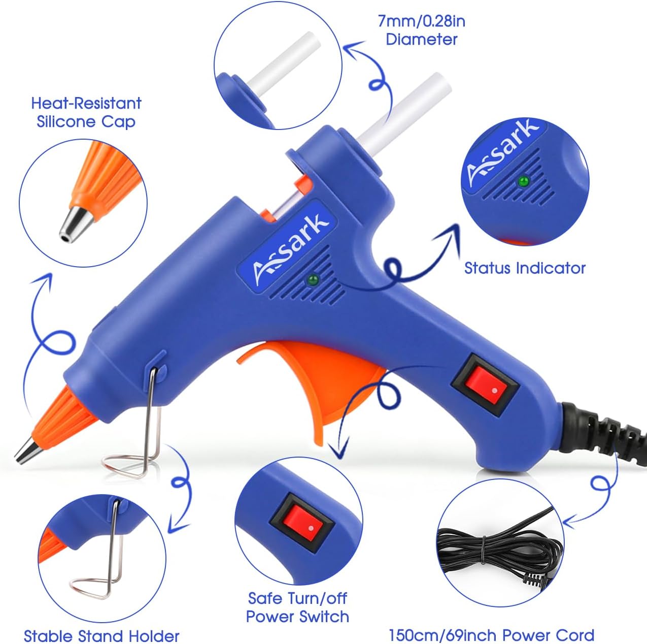 Precision Meets Safety: Engineered with a user-friendly focus, this glue gun features an extended anti-drip nozzle that allows for precise application without the mess of sticky spills. The insulated rubber cap protects your hands from burns, while the integrated safety fuse prevents overheating. The fold-up metal stand ensures the gun rests steadily on your workbench, keeping your nozzle ready for action.