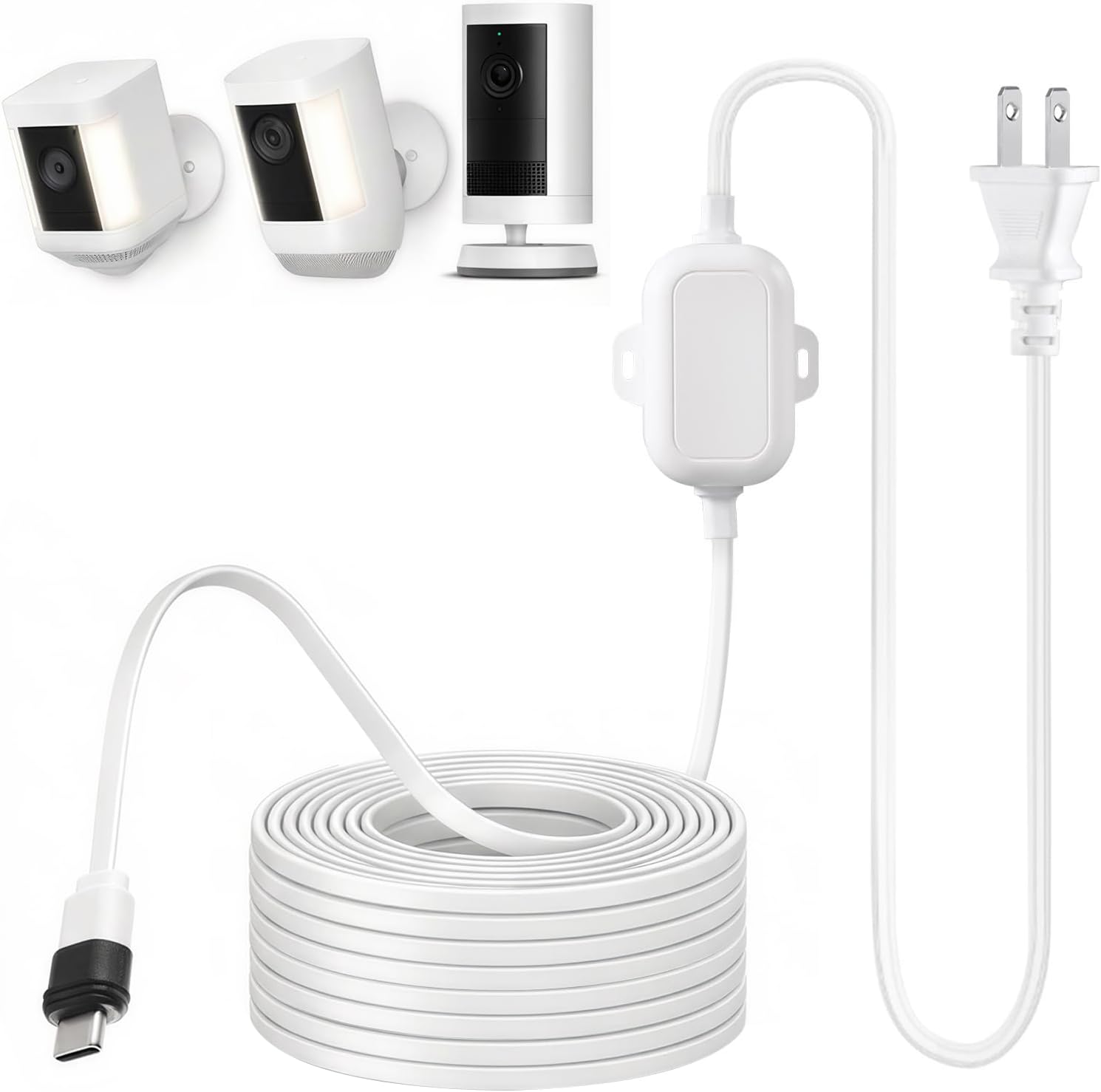 Never worry about changing batteries or missing critical moments due to power loss again. This premium 25-foot USB-C power adapter is engineered specifically for Ring Spotlight Cam Plus/Pro (Battery) and Ring Outdoor Cam Plus/Battery) models, providing a seamless, uninterrupted power supply for 24/7 home security.
