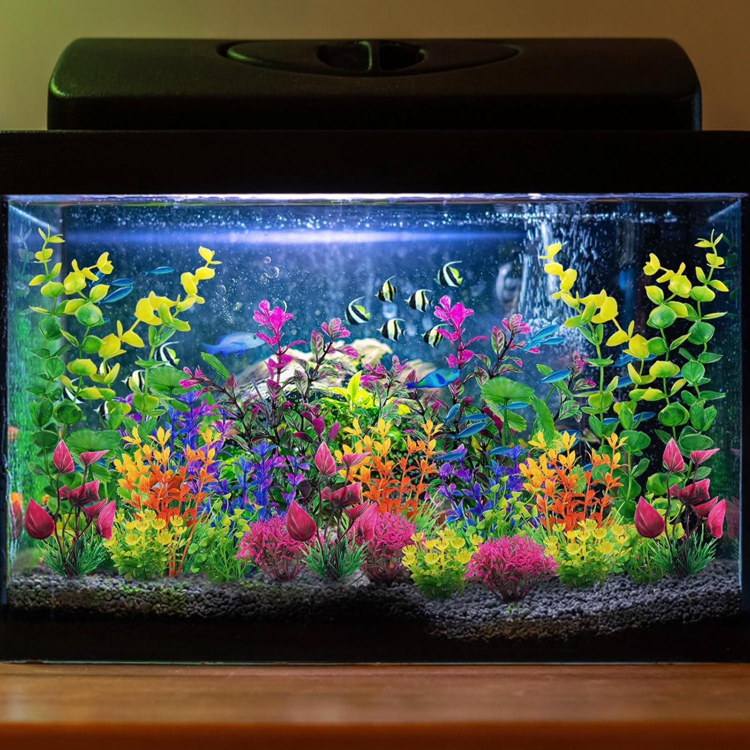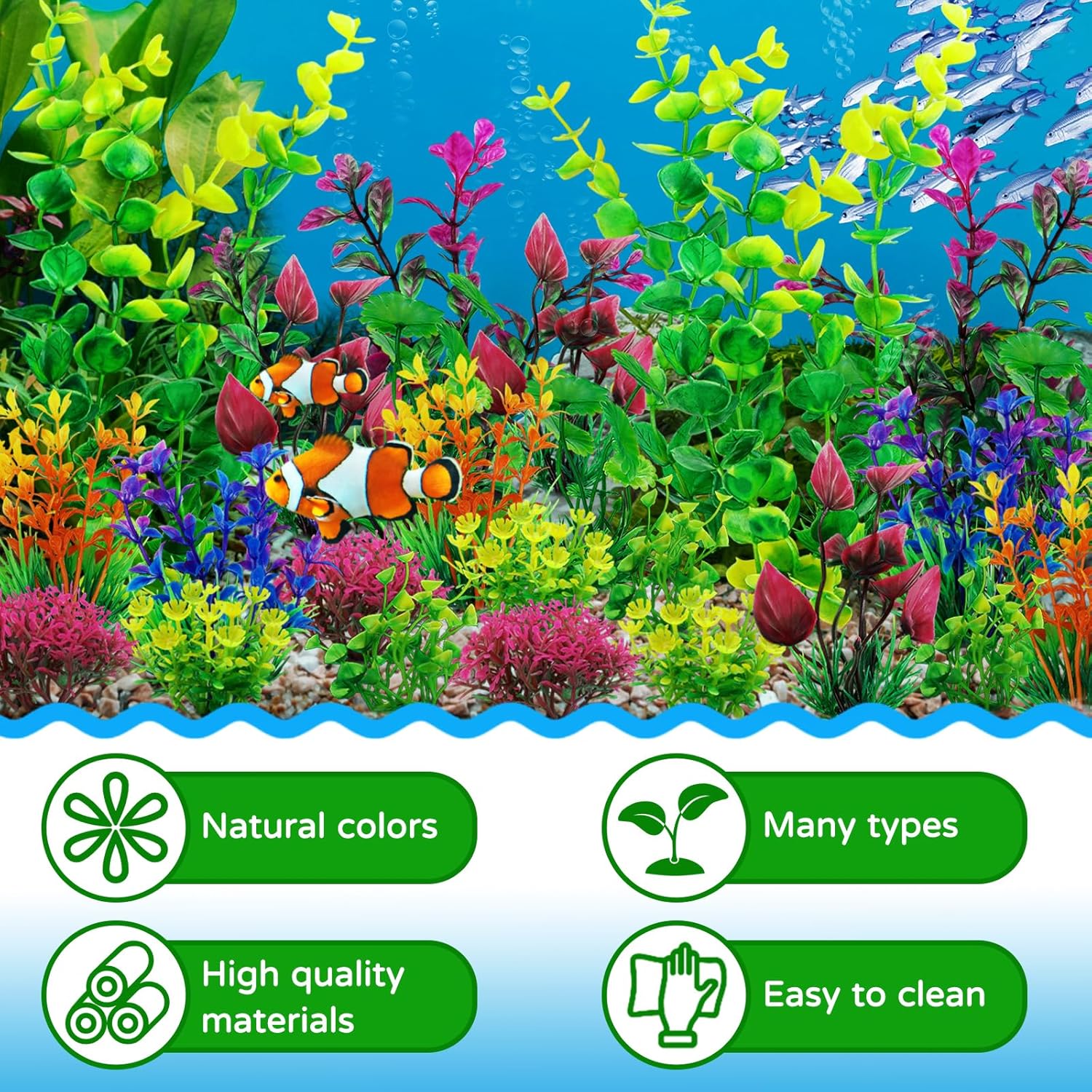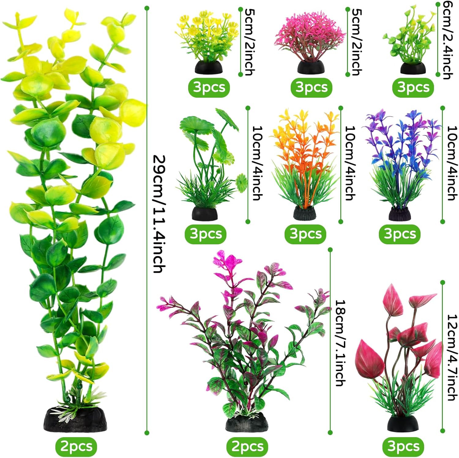- CREATE A VIBRANT UNDERWATER WORLD: Includes 25 pieces of mixed-color artificial aquarium plants (Green, Pink, Red, Blue, Orange) ranging from 2 to 12 inches, allowing you to design a layered, natural-looking aquascape.