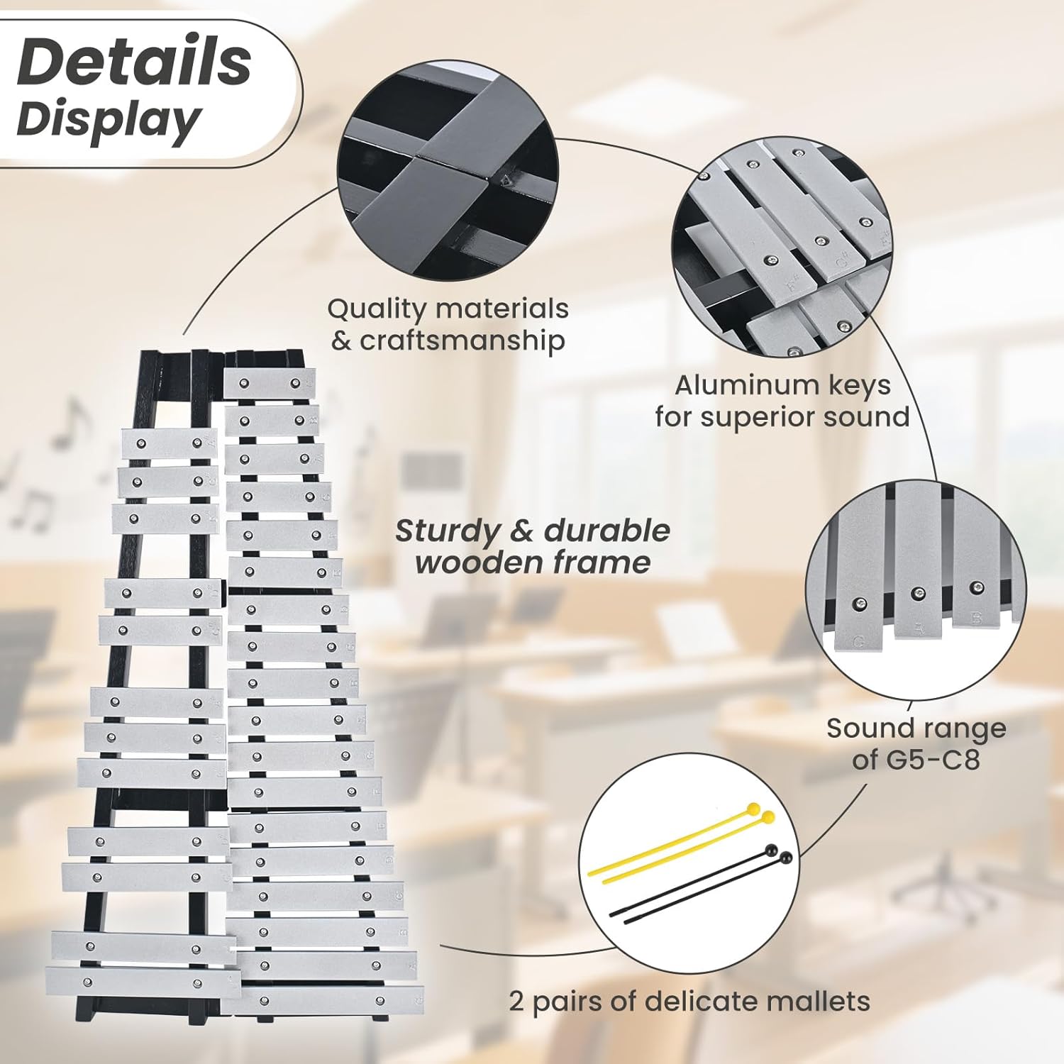• PREMIUM SOUND QUALITY: Crafted with high-quality aluminum bars and a sturdy wooden body, producing a crisp, rich tone suitable for bands and solo practice.
