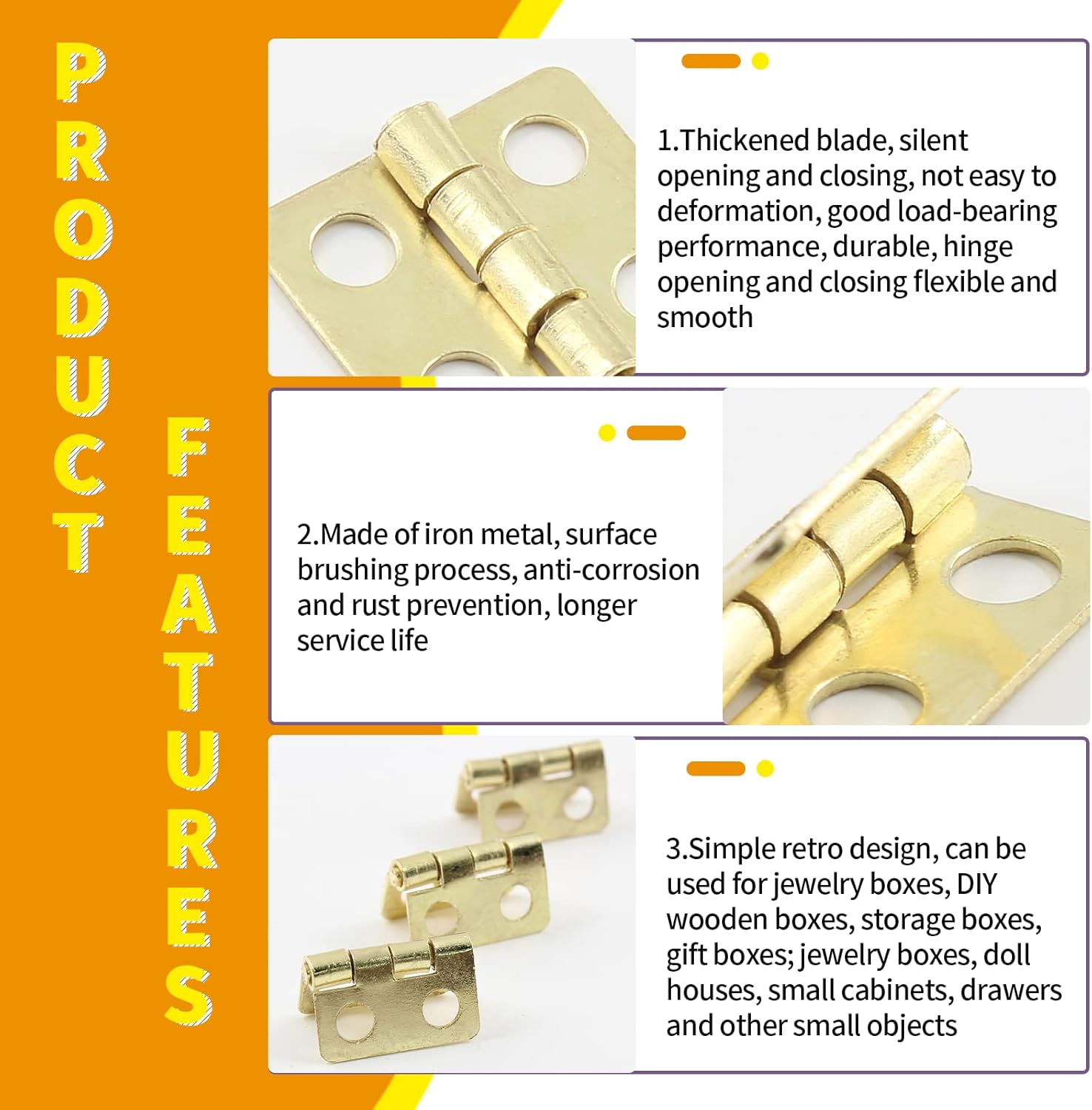 Engineered for precision, each hinge features a flexible 180-degree rotation range. This allows for full movement, making them perfect for small lids, doors, and flaps on jewelry boxes, gift chests, and mini cabinets. The sturdy construction ensures the hinge maintains its alignment even with frequent use.