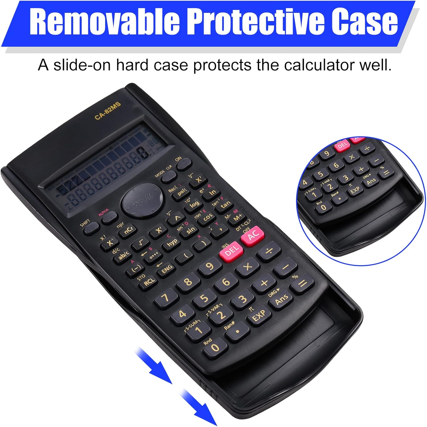 • Protective Covers: Includes a durable, hard sliding cover for each calculator to protect keys and screen from damage.