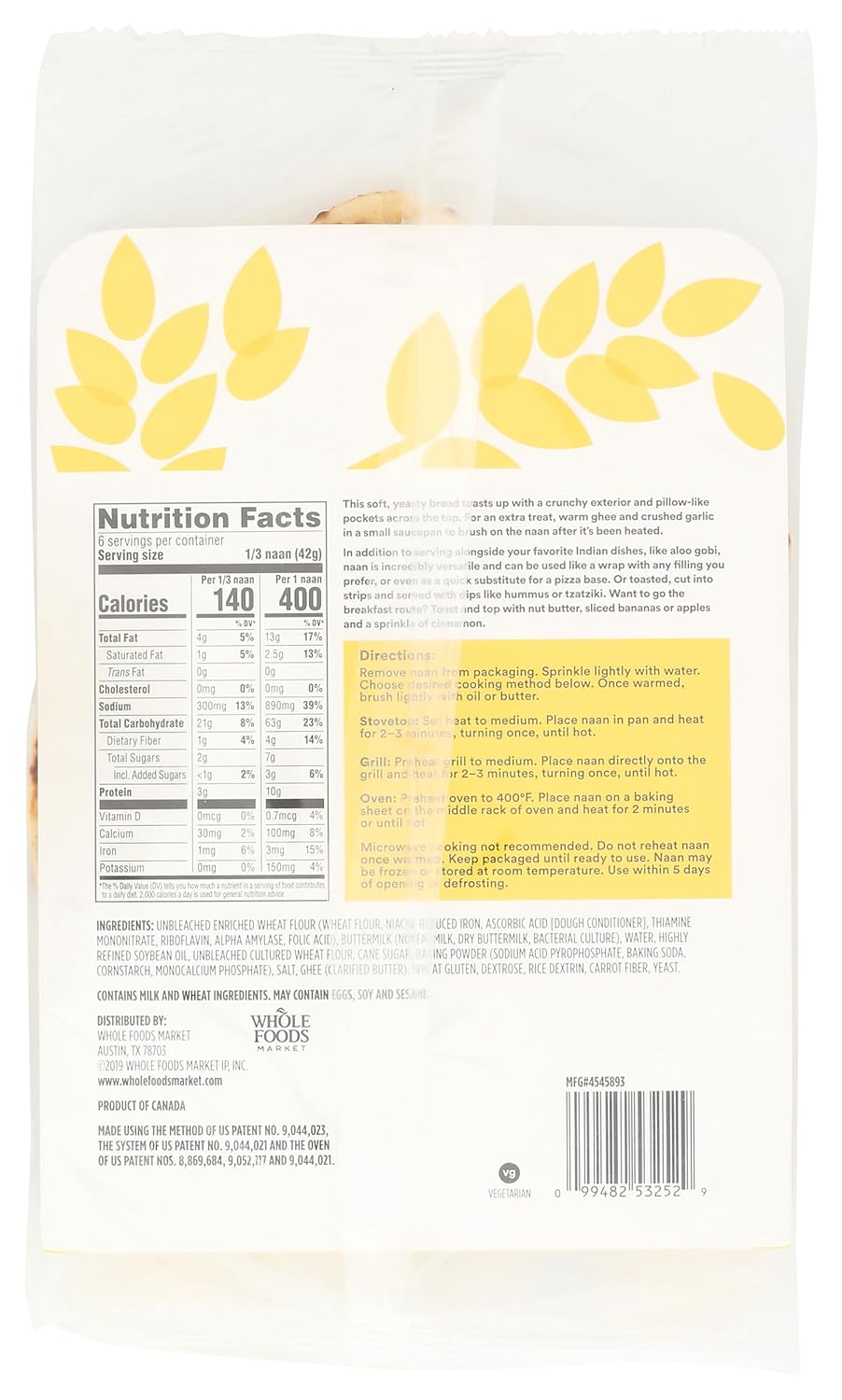 Elevate your dining experience with the rich, authentic taste of 365 by Whole Foods Market Original Tandoori Naan. This traditional Indian-style flatbread is baked to perfection in a tandoor-style oven, resulting in a delightfully soft texture with a beautifully charred, bubbly surface. Perfect for scooping up curries, dipping in hummus, or crafting the ultimate gourmet sandwich, this versatile naan is a pantry essential for food lovers. Made with quality ingredients and free from artificial preservatives, it offers a homemade taste that pairs perfectly with your favorite dishes. Simply heat on the stove, in the oven, or on the grill to enjoy warm, pillowy bread in minutes.