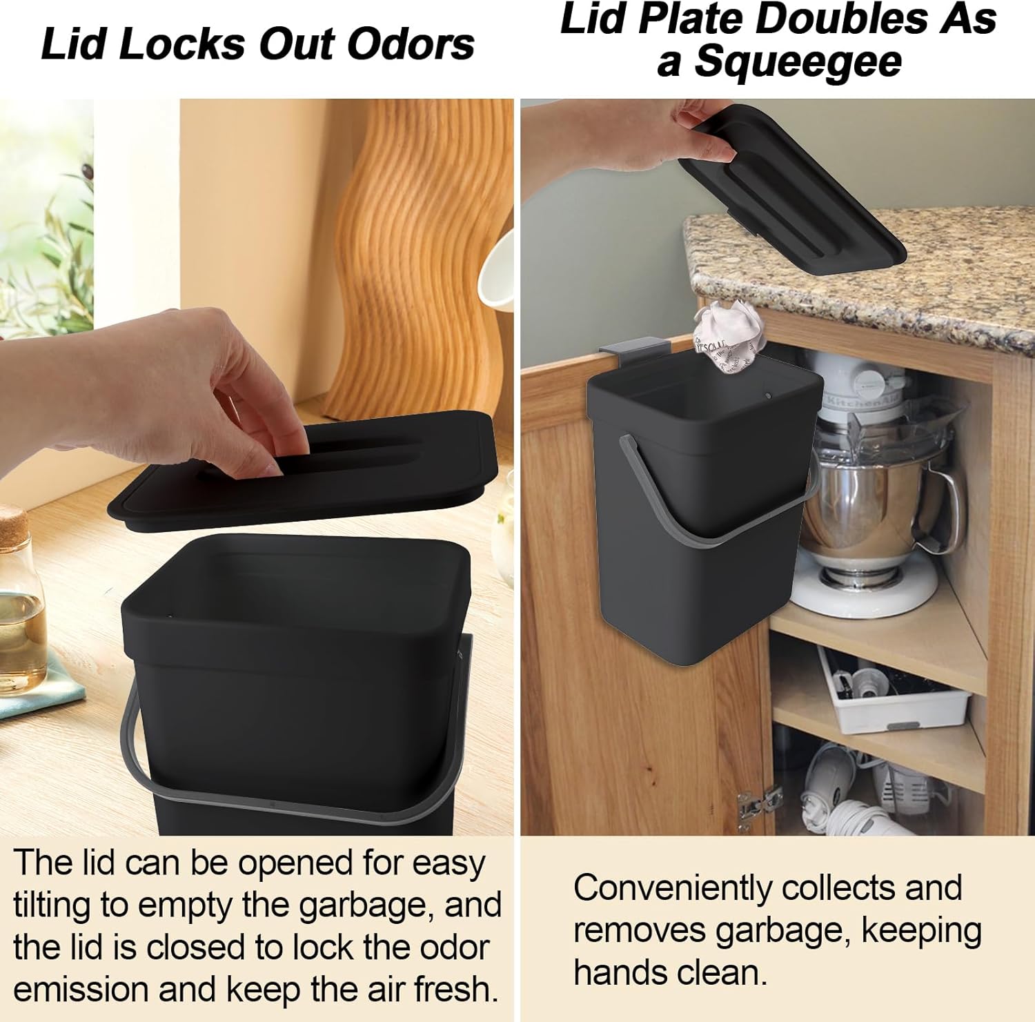 • ODORLESS & AIRTIGHT: Designed with a sealing lid to trap smells and keep fruit flies at bay, maintaining a fresh and clean home environment without costly filters.