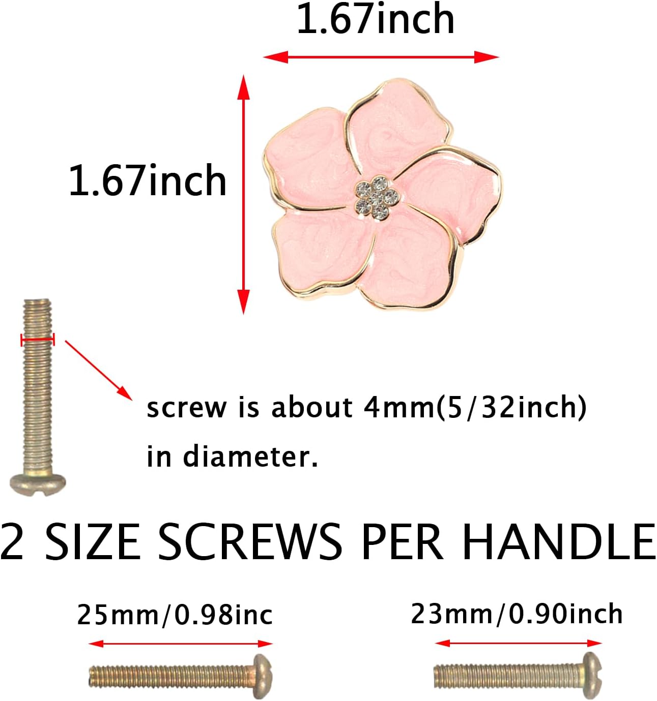 - Package Includes: 4x Flower Petal Knobs, 4x Long Screws, 4x Short Screws
