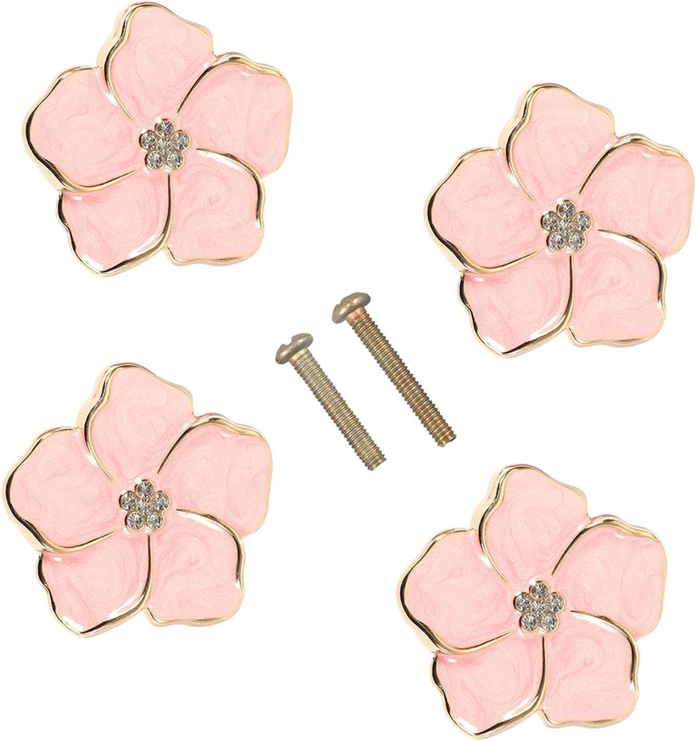 4-Pack Pink Flower Petal Drawer Knobs – Zinc Alloy Decorative Cabinet Pulls for Dressers, Nightstands & Kids Room Furniture