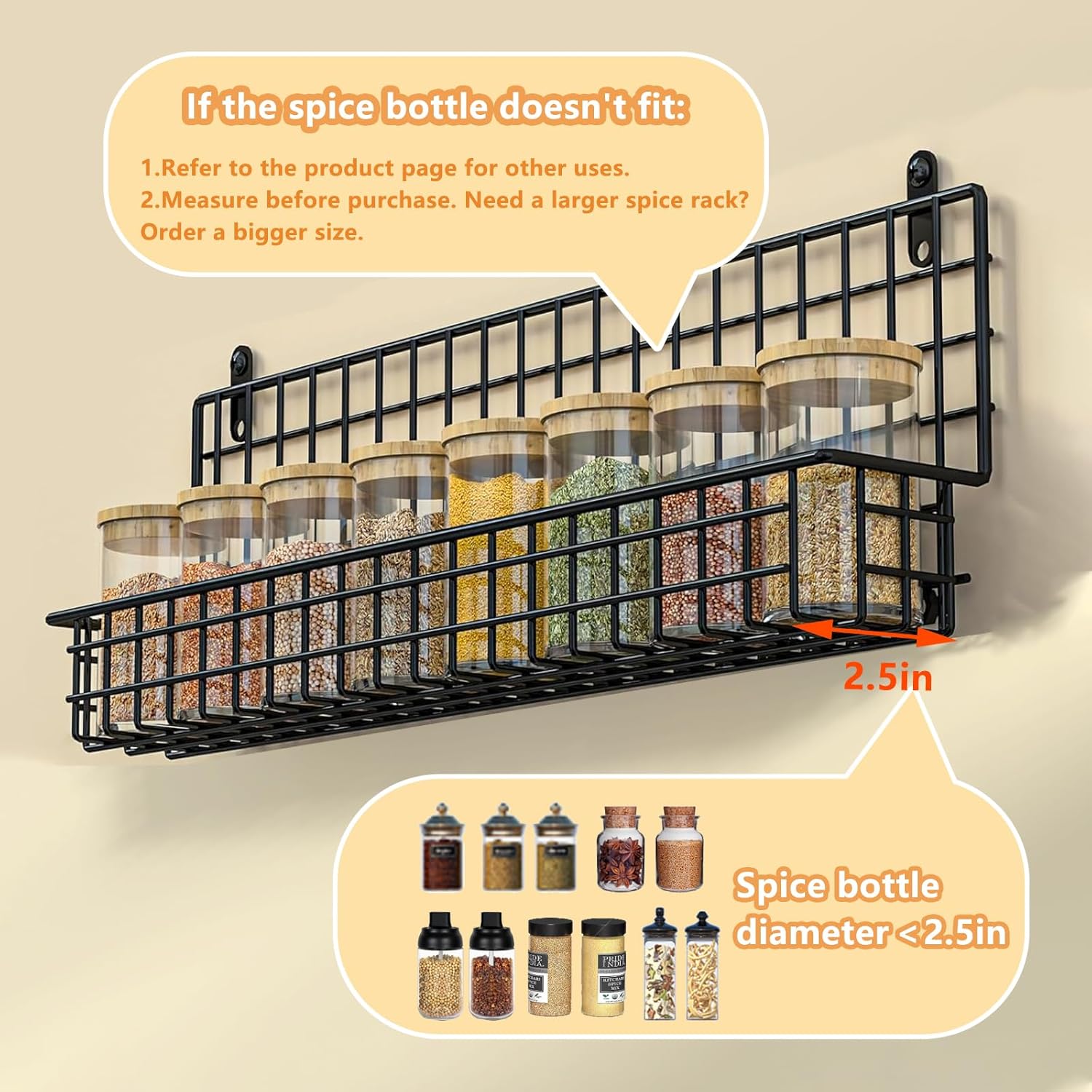 - Versatile functionality: Beyond spices, this rack is ideal for organizing medicine bottles, skincare lotions, essential oils, nail polish, or garage hardware.