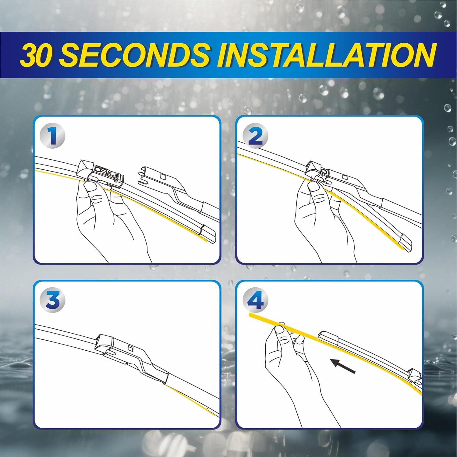 • AERODYNAMIC DESIGN: Built-in wind spoilers and memory steel springs ensure a streak-free wipe and smooth contact at high speeds.