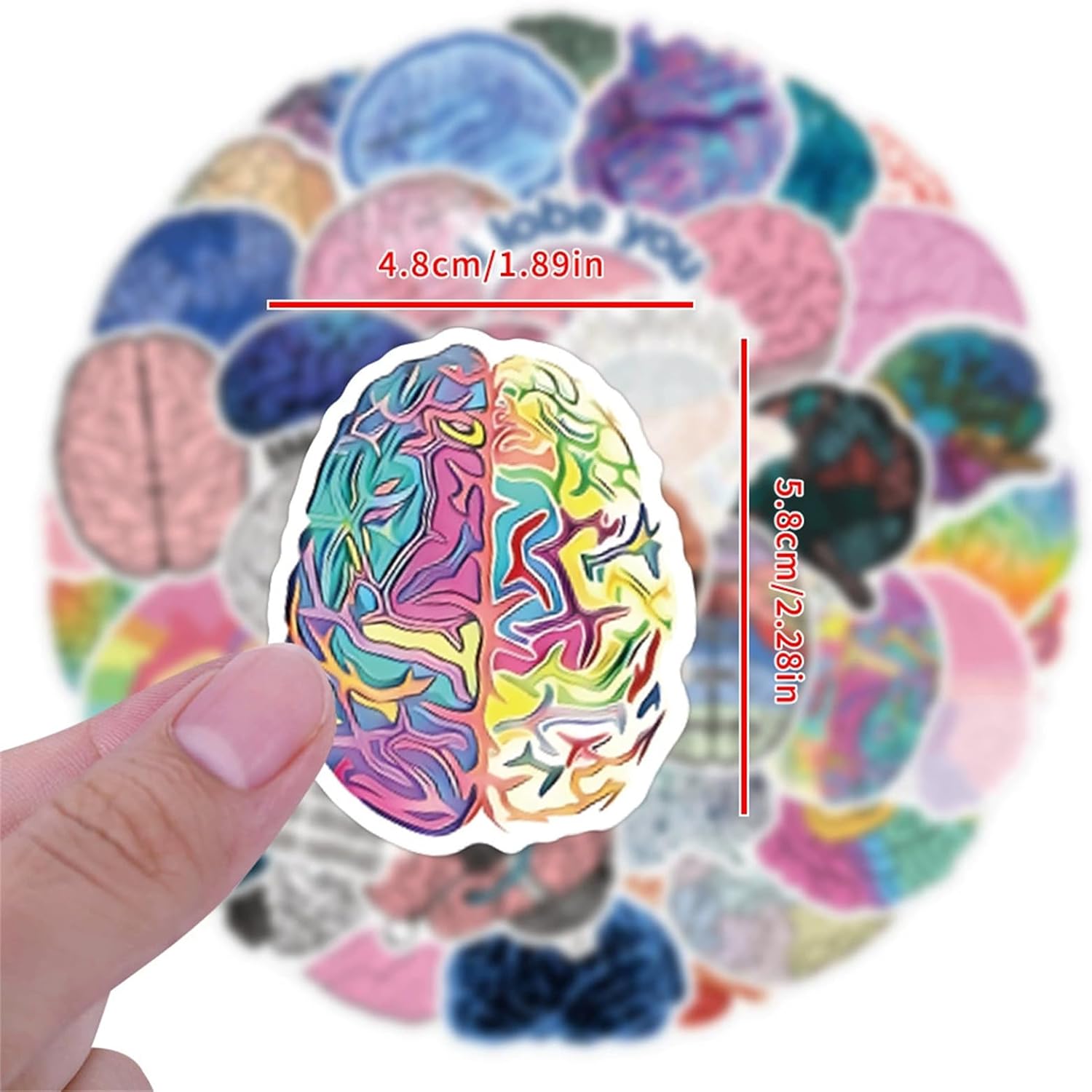 50Pcs Cute Brain Stickers for Kids & Adults – Funny Cartoon Vinyl Decals, Waterproof Mental Health & Biology Stickers for Water Bottles, Laptops, Scrapbooks