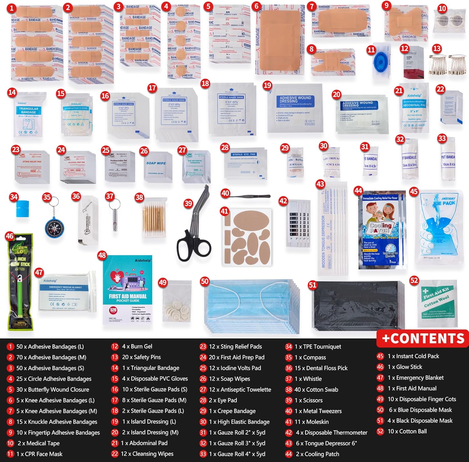 - ALL-INCLUSIVE EMERGENCY KIT: Includes 520 pieces of essential medical supplies, from bandages and gauze to a tourniquet and emergency blanket.