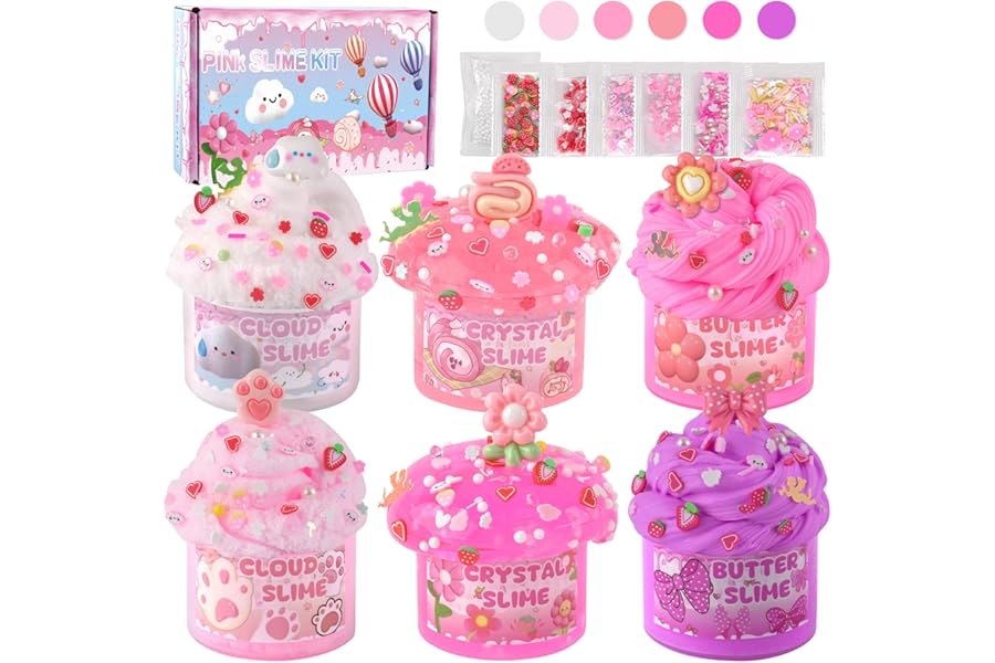 6 Pack Slimes, Pink Slime Kids, Cloud Slime kit for Girls Ages 8-12, Toys for Girls and Boys, for Kids Slime Set Party kit Go