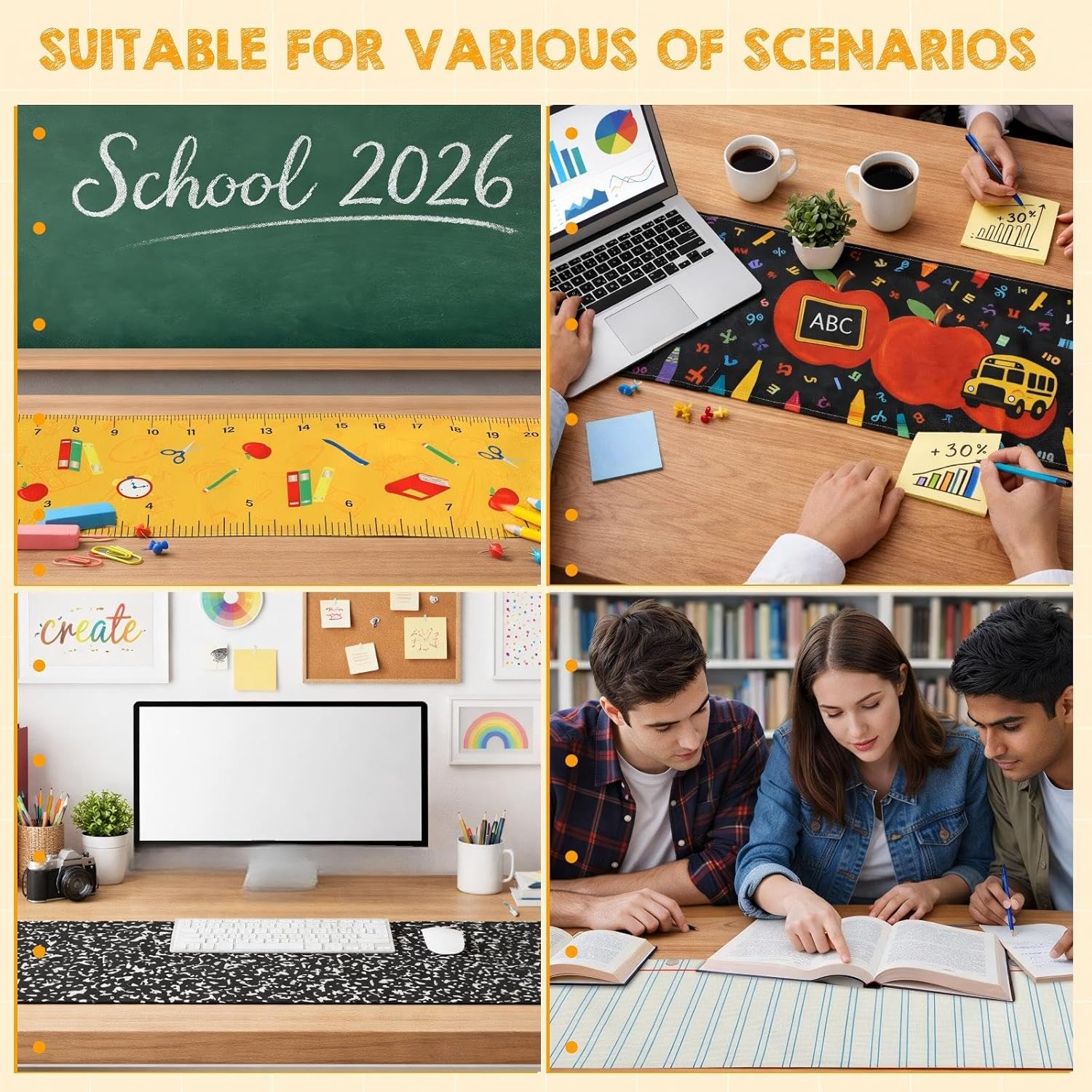 Whether you are a room parent organizing a welcome-back breakfast, a teacher decorating a classroom, or an administrator hosting an open house, these runners help build a warm and engaging atmosphere. They also make a thoughtful and practical gift for educators, allowing them to refresh their learning environment with ease. Reusable and easy to store, this set ensures your school events are colorful, memorable, and perfectly styled.
