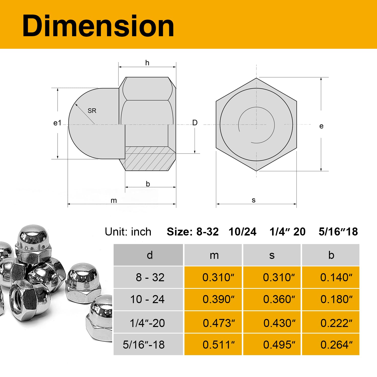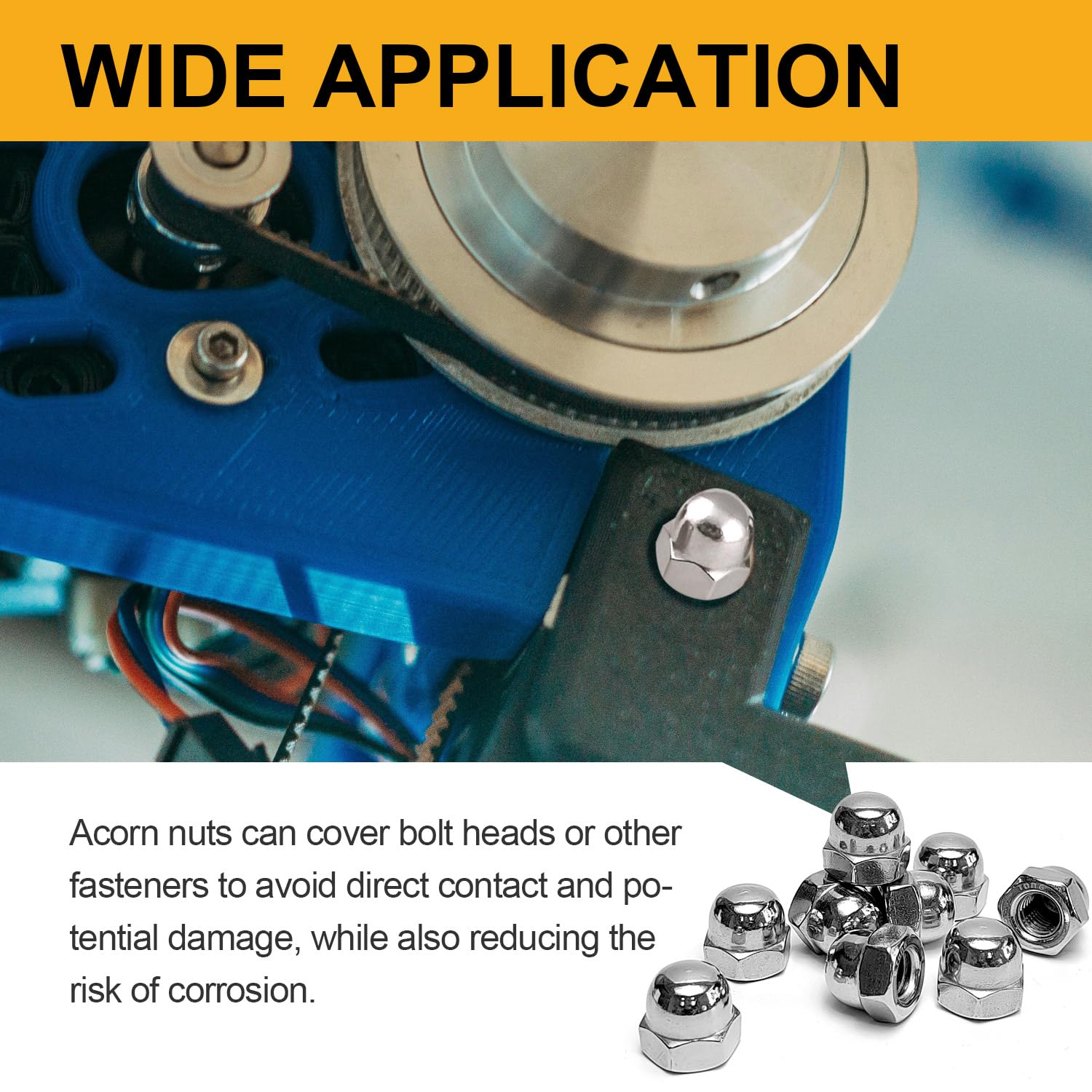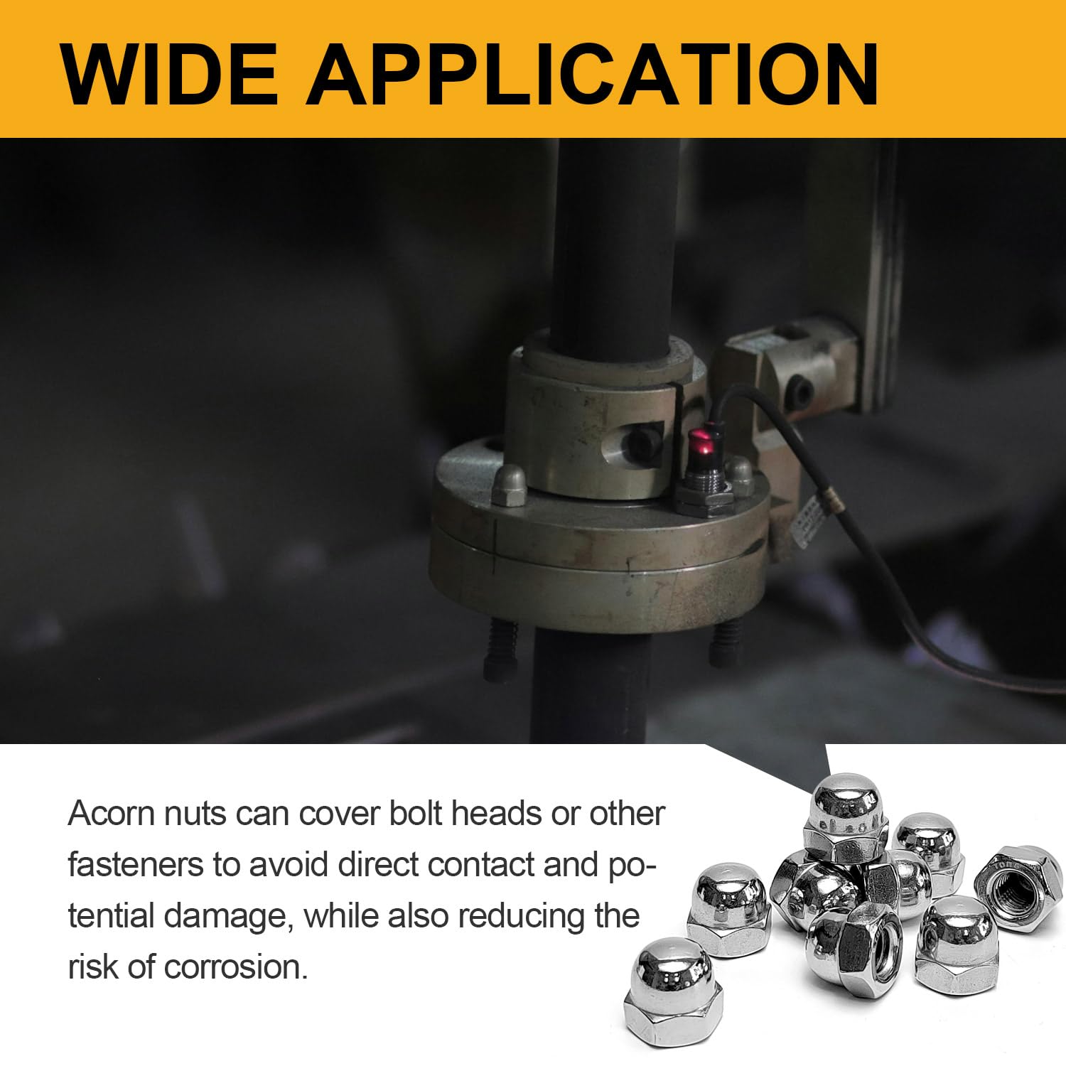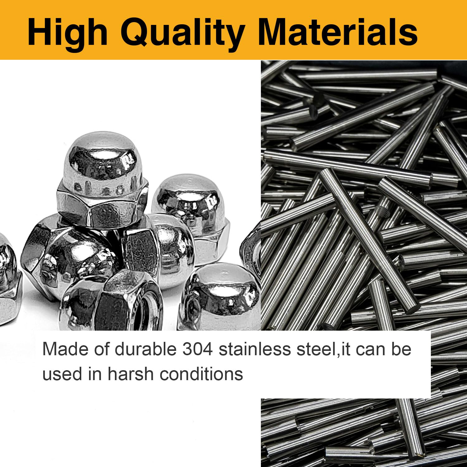 Elevate the safety and aesthetics of your fastening projects with this premium 70-Piece Acorn Nut Assortment Kit. Crafted from high-grade 304 stainless steel, these hex cap nuts are engineered to resist rust and corrosion, making them ideal for use in humid, wet, or harsh outdoor environments. The smooth, low-profile dome head serves a dual purpose: it provides a sleek, finished look that covers exposed threaded ends, preventing injury to passersby and protecting bolt threads from damage.