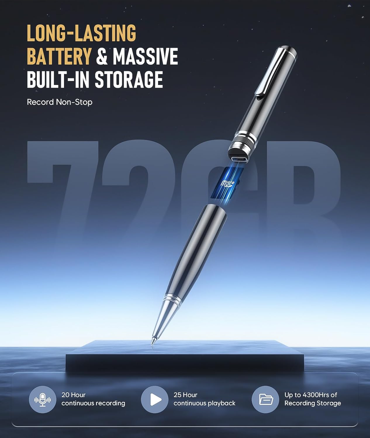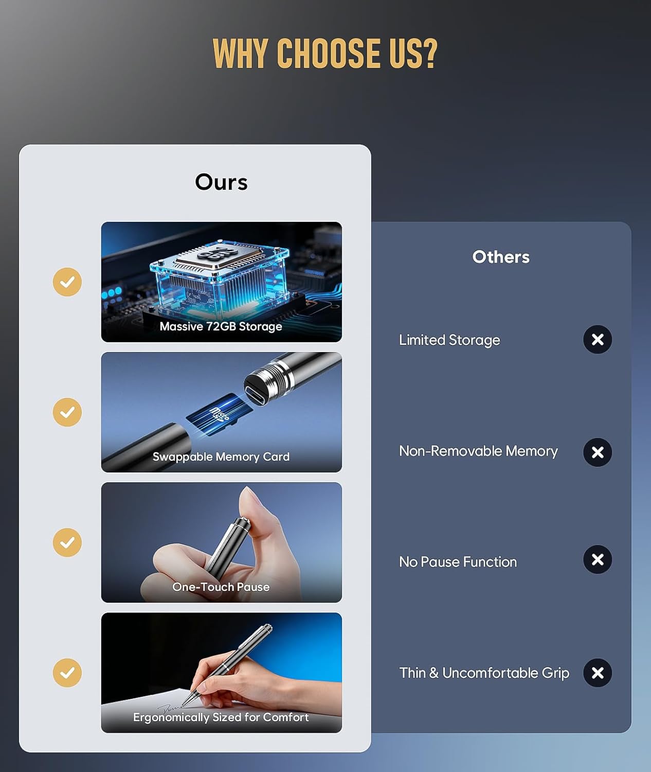 - Massive 72GB Storage: Comes equipped with a pre-installed microSD card offering 72GB of capacity, allowing for up to 4,300 hours of audio recording. Expandable memory ensures you never run out of space during long sessions.