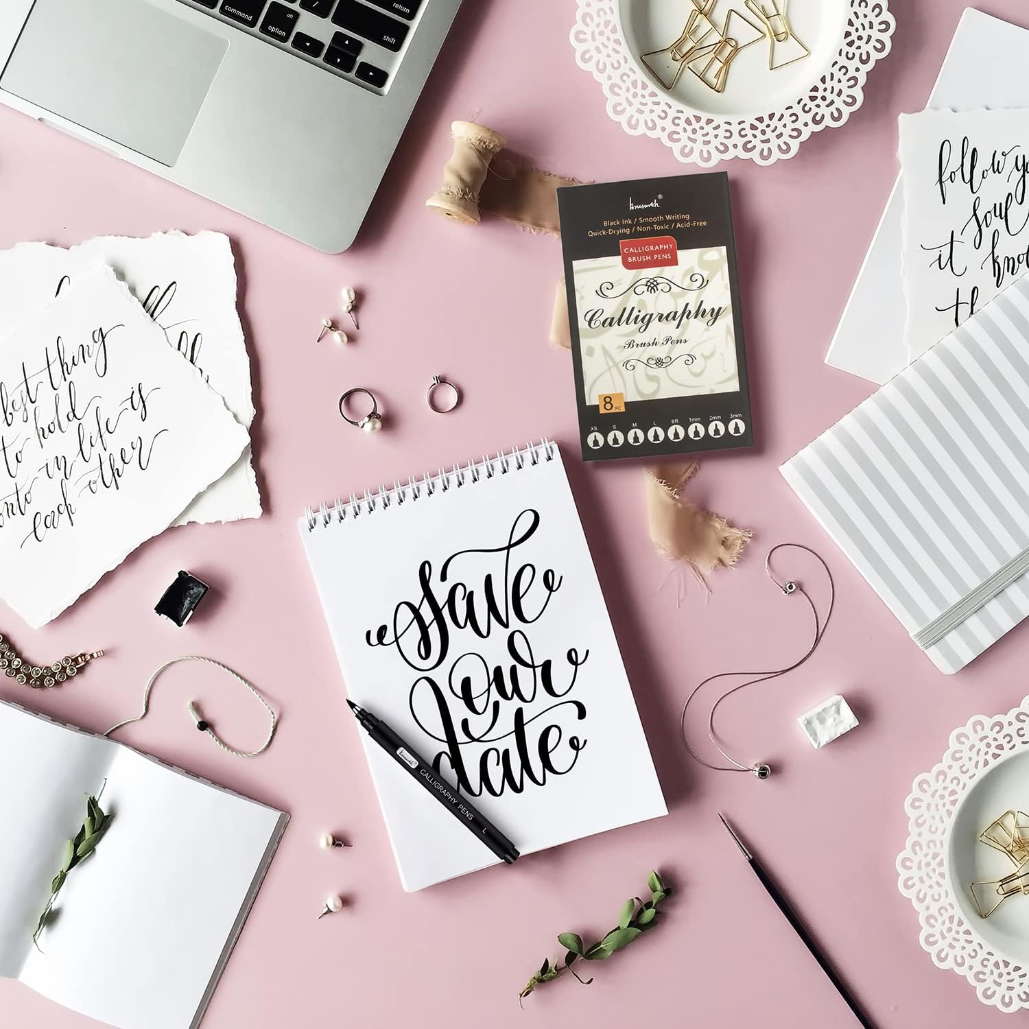 8-Piece Calligraphy Pen Set for Hand Lettering & Art – Premium Brush & Fine Tip Markers for Beginners & Pros