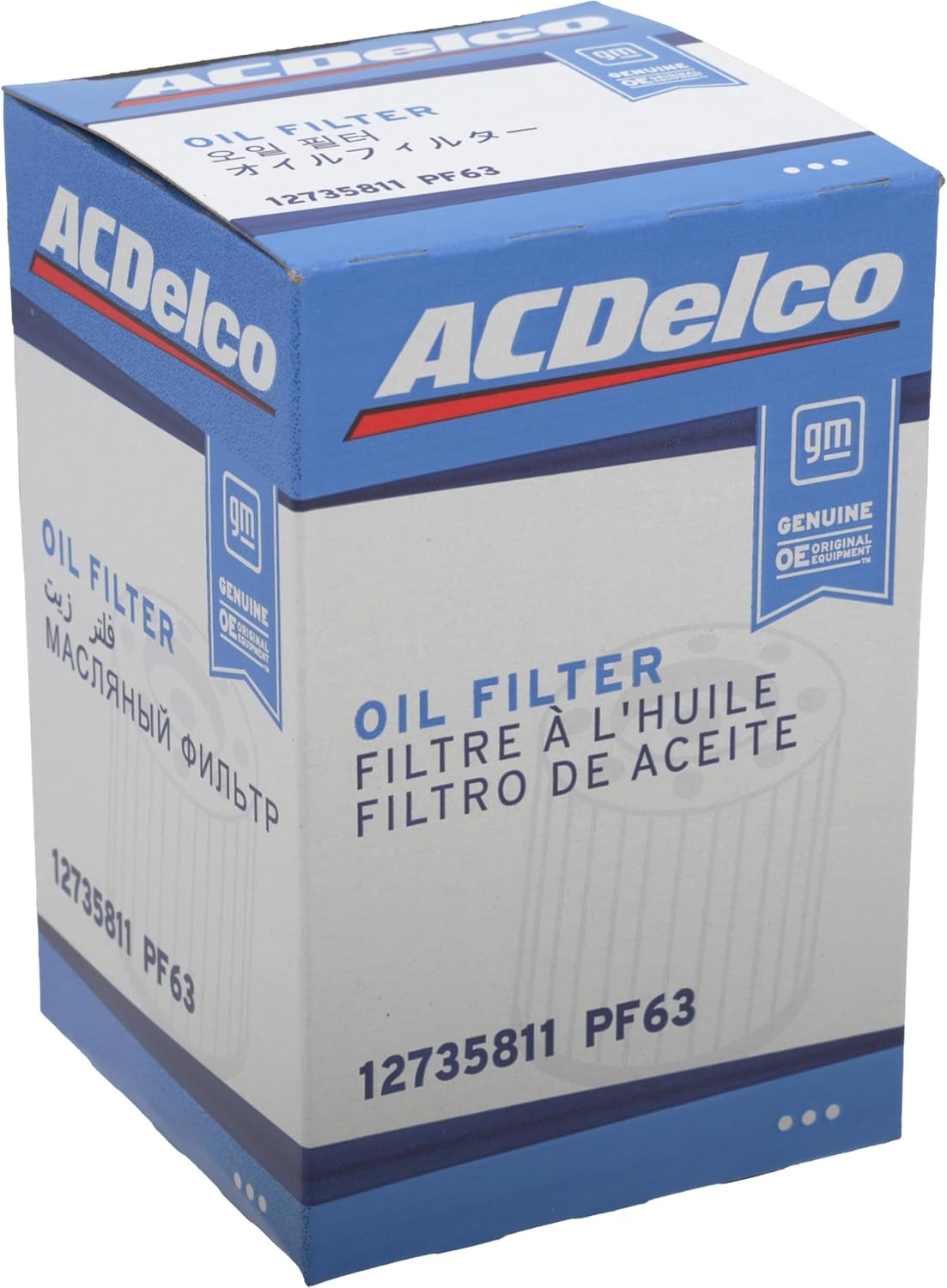 Keep your GM vehicle running smoothly with the ACDelco GM Original Equipment PF63 Engine Oil Filter. Designed, engineered, and tested to rigorous General Motors standards, this genuine OE oil filter delivers exceptional filtration performance for your engine. The PF63 (part number 12735811) features excellent contaminant-trapping capacity, consistent flow management, and high durability to ensure optimal engine protection and efficiency. As a genuine GM Original Equipment part, this filter meets or exceeds the exact specifications of the filters originally installed in your GM vehicle during production. Trust ACDelco, the brand backed by General Motors, to protect your engine from harmful abrasives and contaminants. Compatible with a wide range of GM vehicles, this premium oil filter helps extend engine life and maintain peak performance. Simple installation for DIY maintenance or professional mechanic service.
