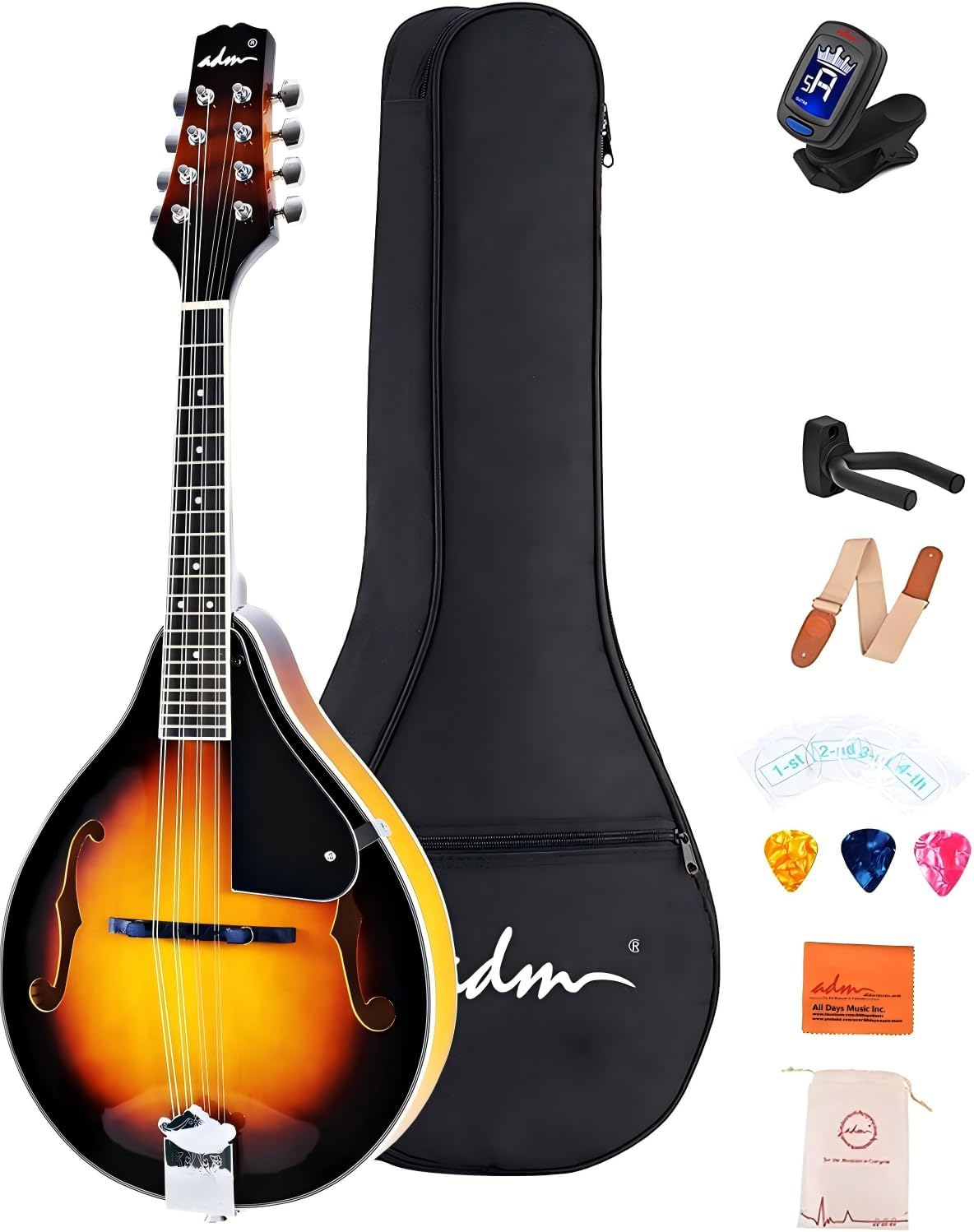 Whether you are a beginner picking up your first instrument or an experienced player looking for a reliable backup, the ADM A-Style Acoustic Mandolin offers the perfect blend of quality craftsmanship and value. Designed for players of all ages, this all-inclusive set ensures you have everything you need to start playing right out of the box.