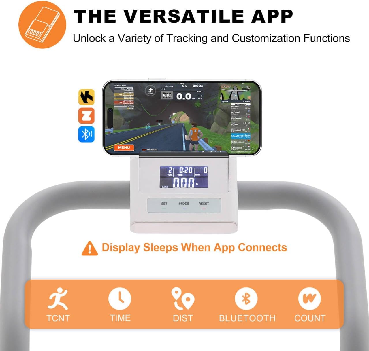 • SMART BLUETOOTH CONNECTIVITY: Syncs with a dedicated fitness App to track real-time data and history, plus features a secure cup holder for essentials.