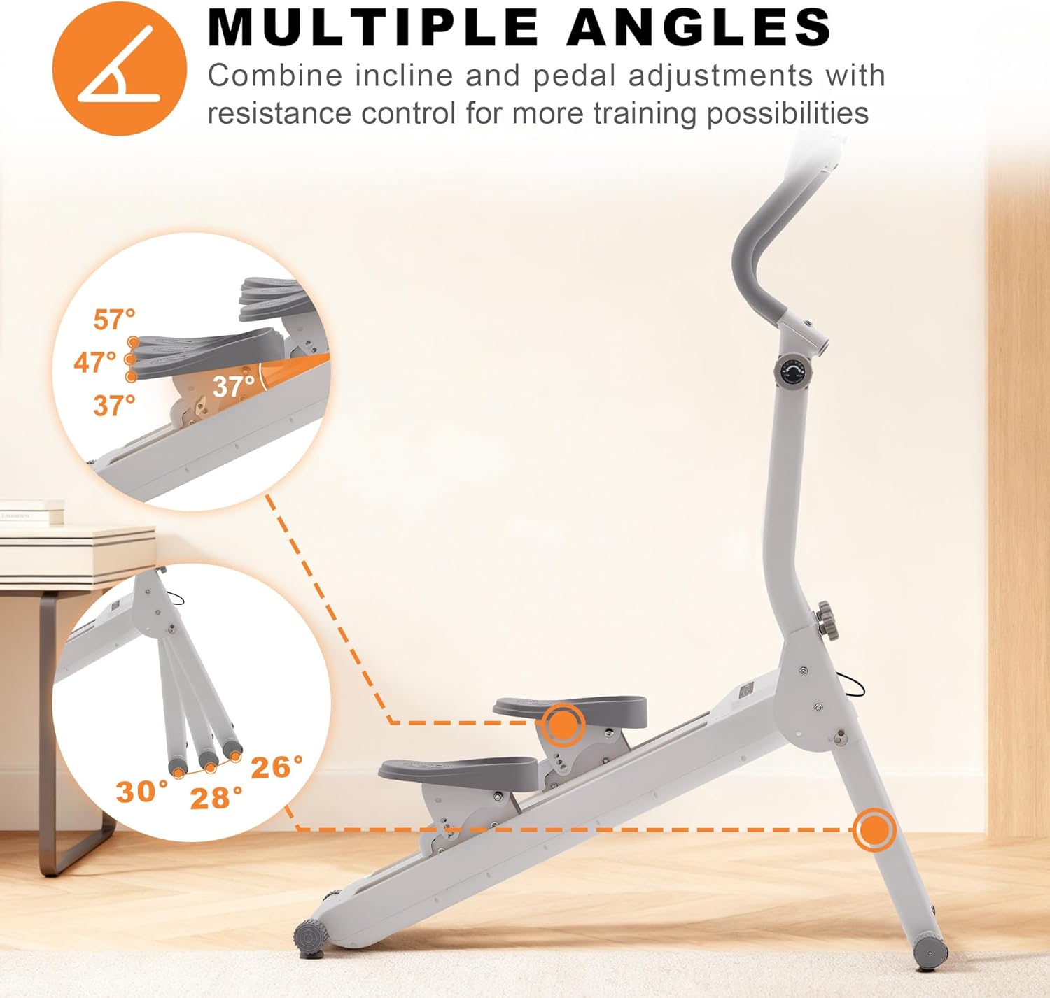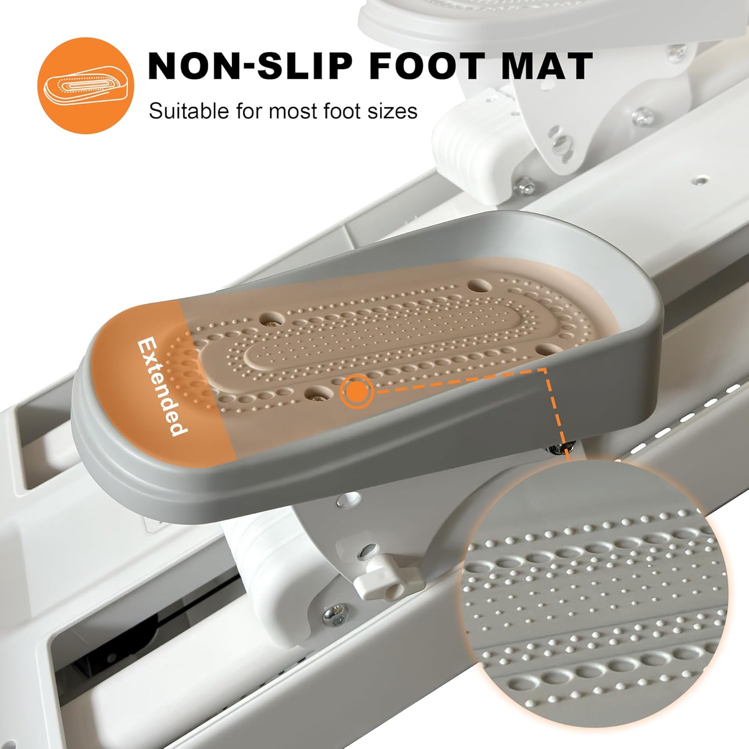 Unlike standard steppers with short, limited movement, our machine features an extra-long 19-inch stride. This wider range of motion ensures deeper muscle engagement, targeting your glutes, quads, and calves more effectively. The 3-level adjustable pedal angles allow you to customize your foot positioning to suit your comfort and target specific muscle groups, while whisper-quiet rollers (under 20dB) let you train without disturbing the household.