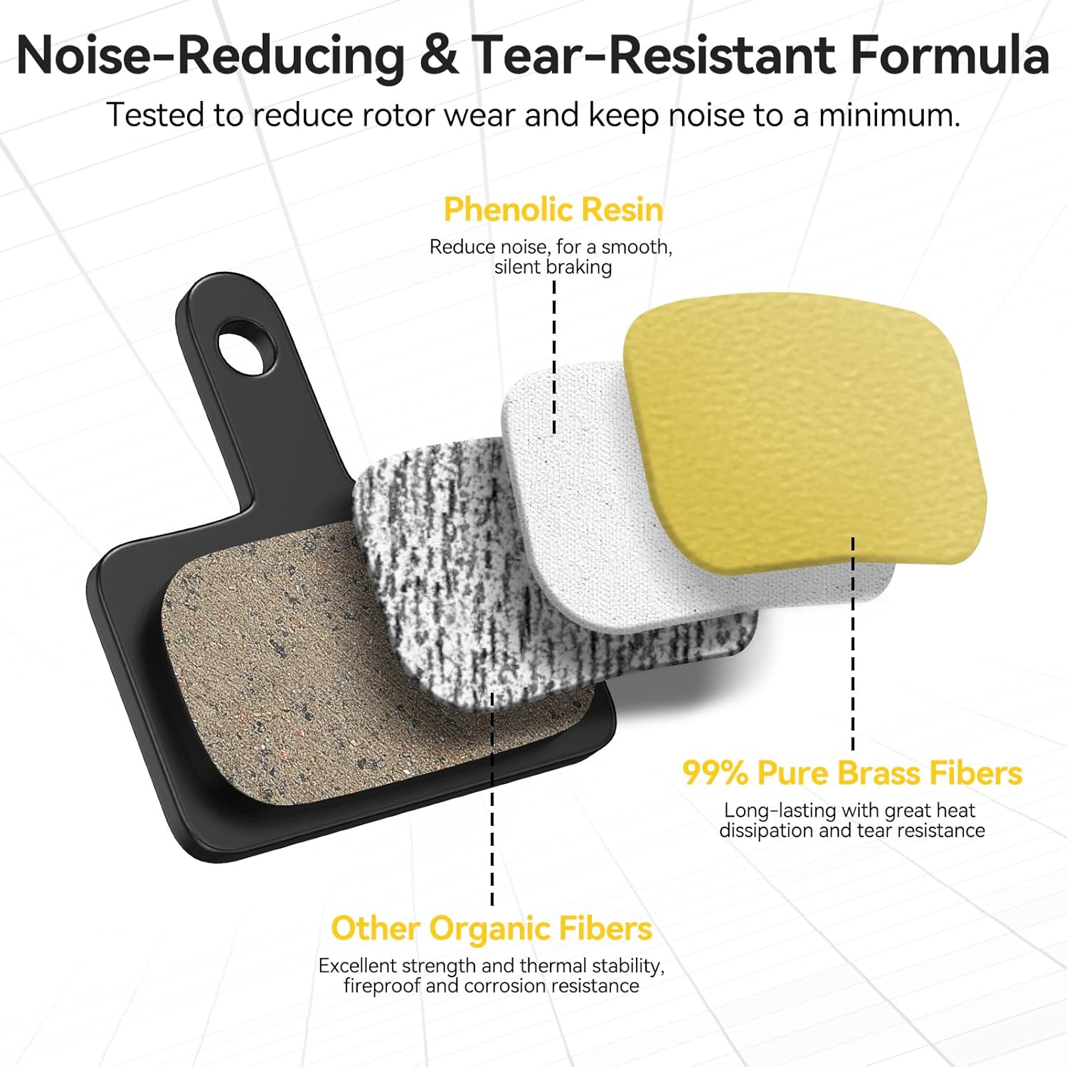 - LOW NOISE COMFORT: Made from pure brass fiber and resin to minimize vibrations and eliminate squealing, providing a quiet and smooth commute.