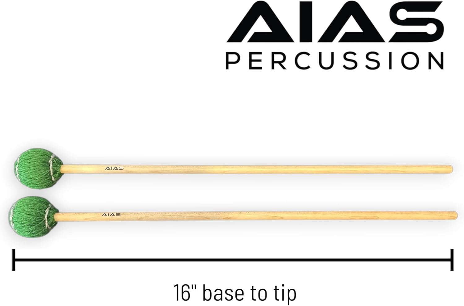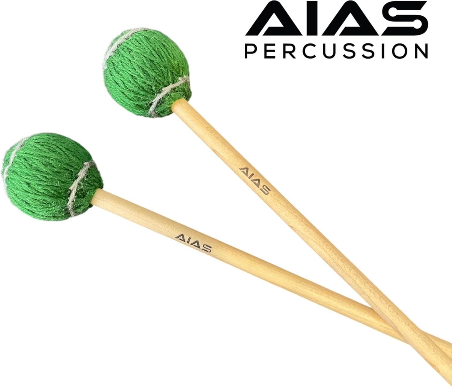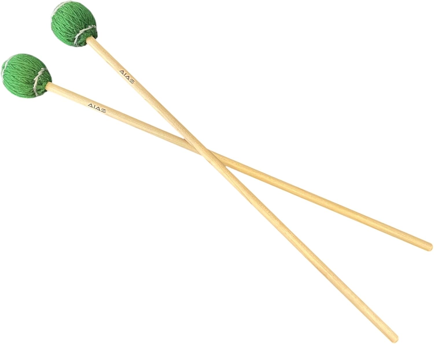 AIAS Vibraphone Mallets – Green Wrapped Yarn Heads with Maple Shafts, 16-Inch Professional Percussion Mallets for Clear Articulation and Tone (1 Pair)