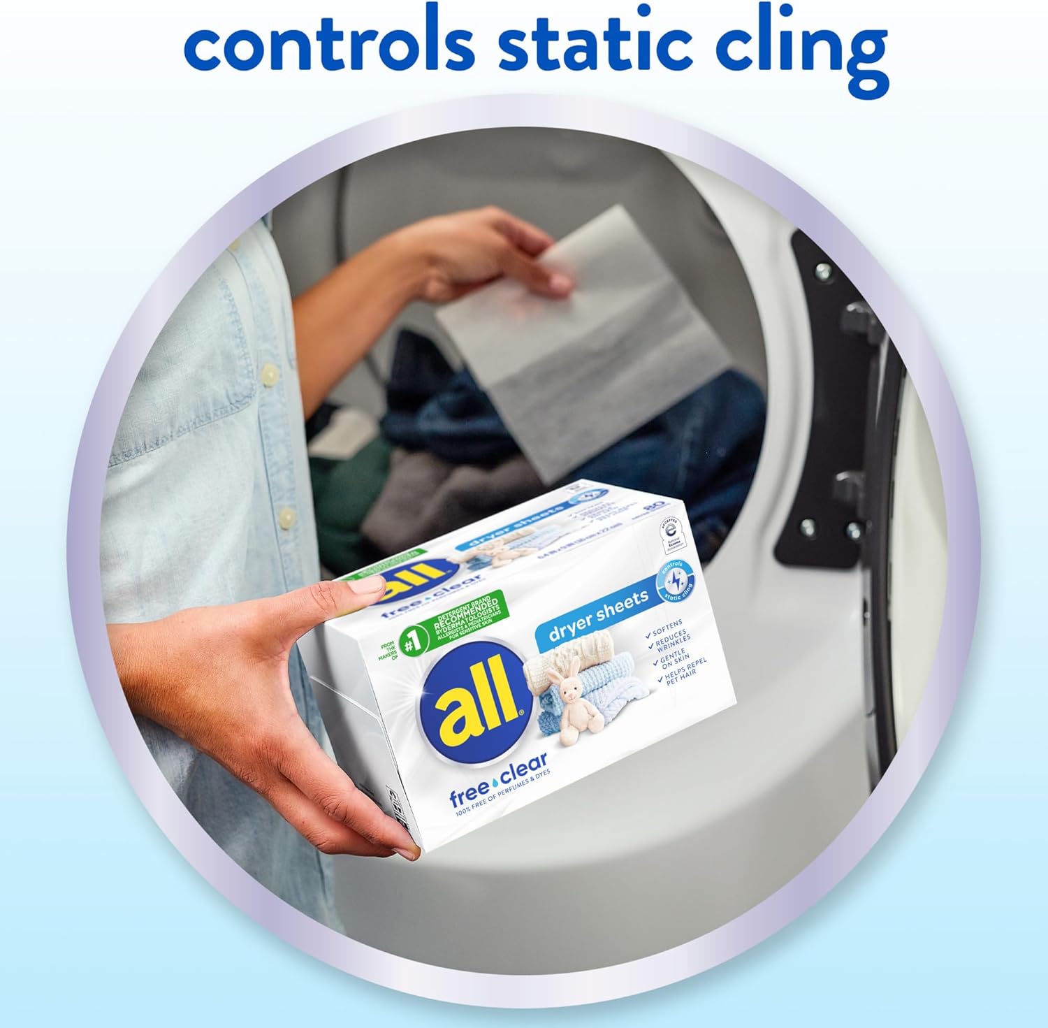 Experience the ultimate in fabric care with the all Free Clear Fabric Softener Dryer Sheets, specifically designed for sensitive skin. As the #1 detergent brand recommended by dermatologists, all Free Clear delivers a powerful clean that is gentle on your family. These dryer sheets are clinically proven to be safe for sensitive skin and have been awarded the National Eczema Association Seal of Acceptance.