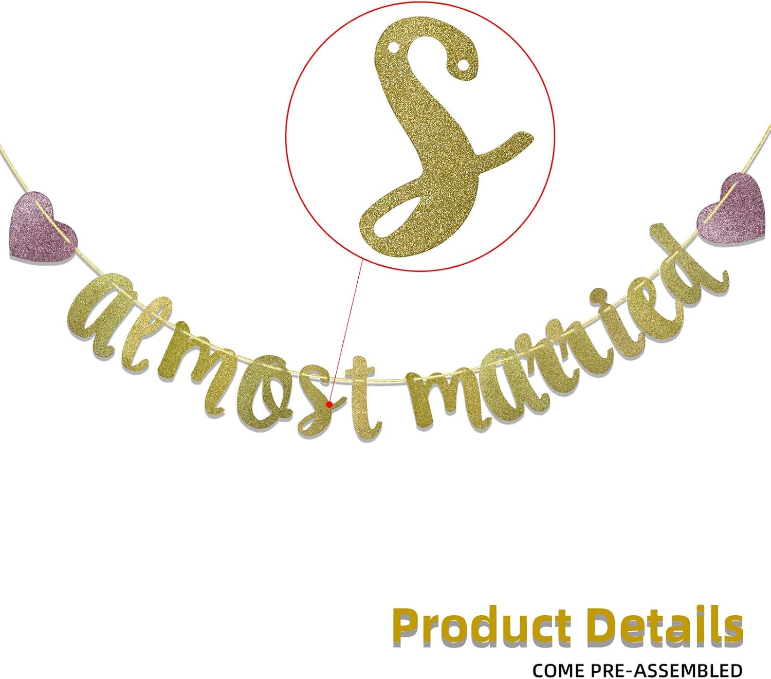 Celebrate your journey to the altar with our stunning ‘Almost Married’ Gold Glitter Banner. Designed to add a touch of glamour and sophistication to your special occasions, this banner serves as the perfect photo prop and decorative accent. Whether you are hosting a bridal shower, a chic bachelorette party, or the wedding rehearsal dinner itself, this sparkling sign sets the mood for romance and celebration.