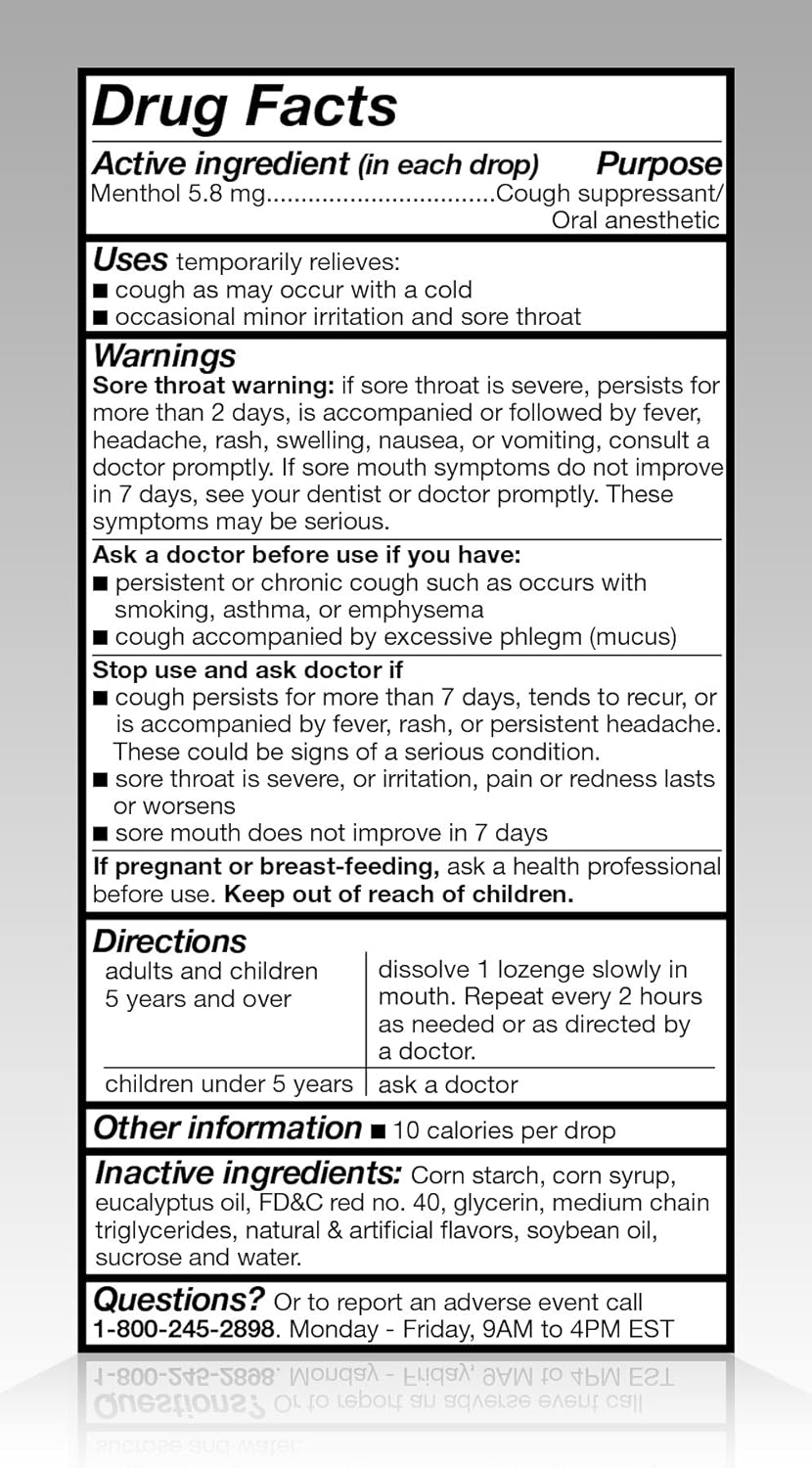 Find fast, effective relief for your cough and sore throat with Amazon Basic Care Cherry Cough Drops. Containing the same active ingredients as leading national brands, these cough suppressants and oral anesthetics provide soothing action for irritated throats and coughs without the premium price tag. The delicious cherry flavor makes taking your medicine easy, while the value-size 160-count bag ensures you have enough supply for the whole family during cold and flu season. Whether you are at home, in the office, or on the go, keep your throat comfortable and your cough under control with this affordable, high-quality alternative from Amazon Basic Care (previously SoundHealth).