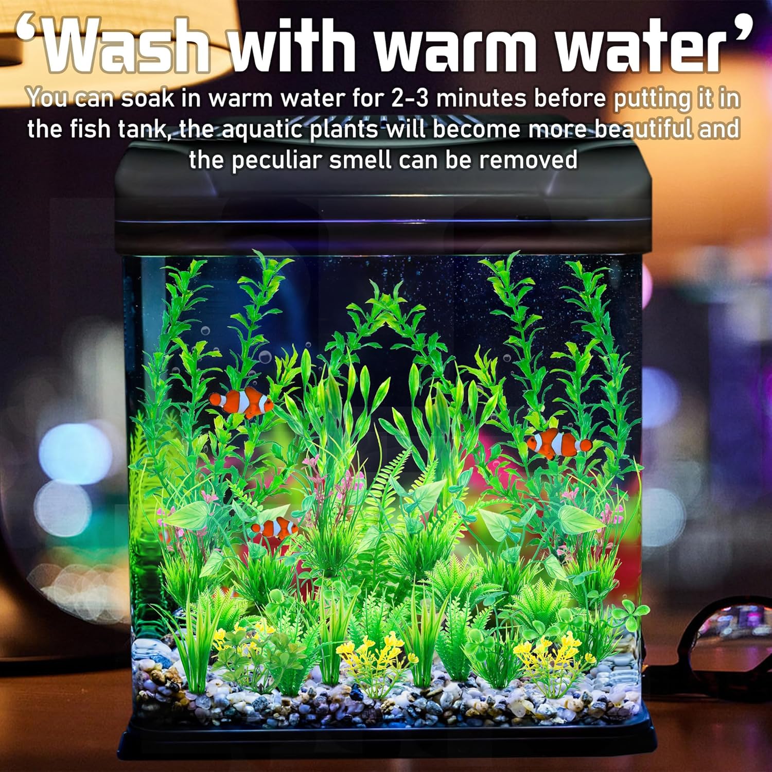 This comprehensive set includes 12 short, 9 medium, and 5 tall plants, making it ideal for 10-gallon tanks or larger. Each plant is equipped with a sturdy ceramic base, keeping them anchored securely in the gravel without floating away. Unlike live plants, these durable decorations require no special lighting, fertilizers, or pruning. They will never wilt, die, or become unsightly, providing a permanently lush, maintenance-free landscape for your aquarium.
