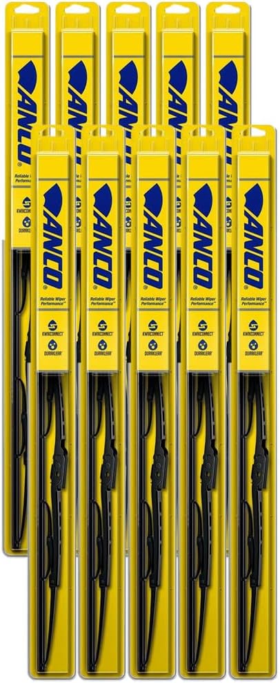 Upgrade your fleet or stock up your garage with this bulk 10-pack of ANCO 31-Series 22-inch Wiper Blades. Designed for performance and value, the 31-22 model delivers a factory-original fit and superior visibility in rain, sleet, or snow. Each blade features a vented bridge and a precision-cut metal flexor that distributes uniform pressure across the windshield, ensuring streak-free wiping every time. The exclusive DuraKlear rubber compound resists cracking and splitting, providing a clear wipe in even the harshest driving environments. Installation is effortless thanks to the KwikConnect system, allowing for a quick and secure attachment in seconds. Trust ANCO’s legacy of automotive excellence to keep your line of sight clear and your driving safe.