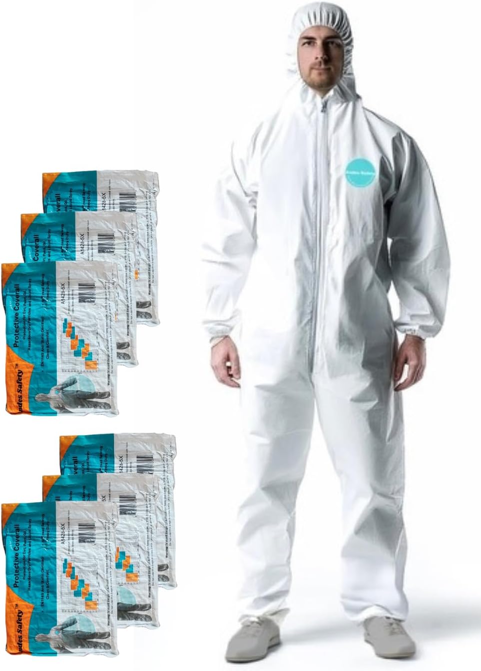 6-pack heavy duty disposable coveralls with integrated hood, elastic wrists & ankles, and full-length zipper. Perfect for painting, industrial work, lab use, and general maintenance.