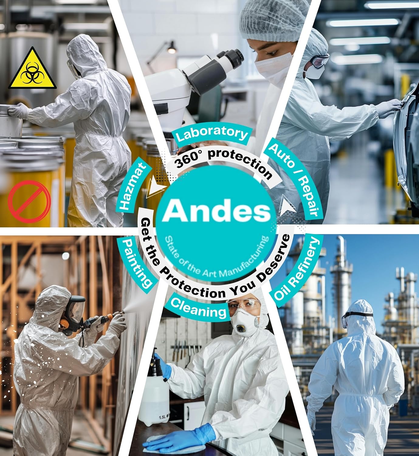 Andes 6-Pack Heavy Duty Disposable Hazmat Suit – Full Body Coveralls with Hood, Elastic Wrists & Ankles, White Paint & Lab Protective Wear