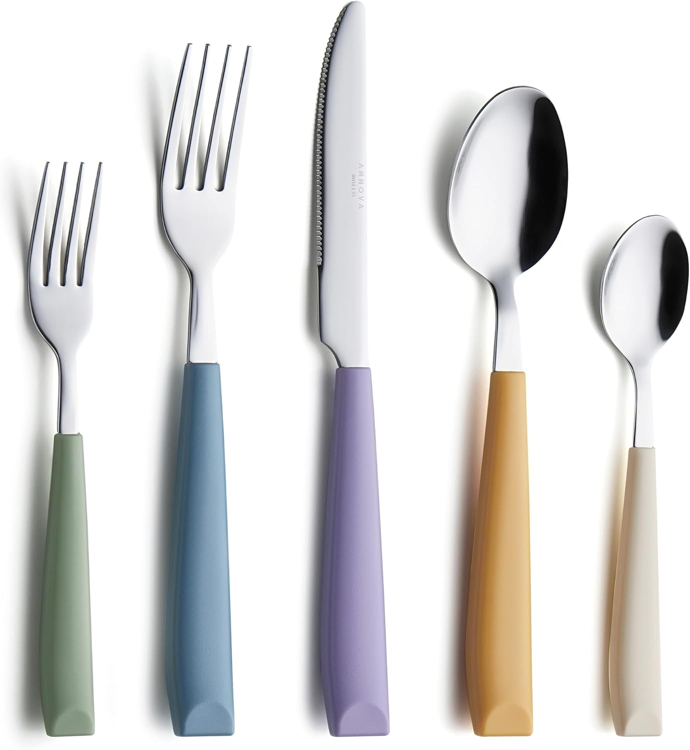 ANNOVA 20-Piece Stainless Steel Flatware Set with Colorful Handles – Dinner Knives, Forks, Spoons for 4 Settings – Morandi Mix